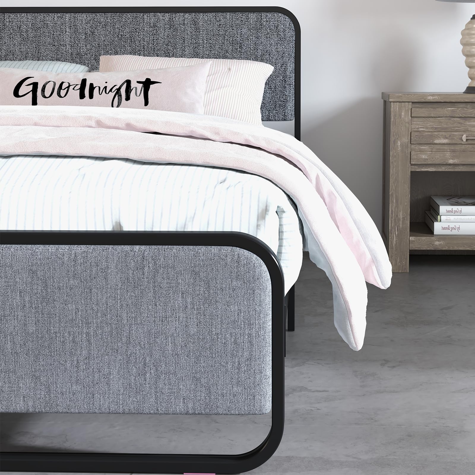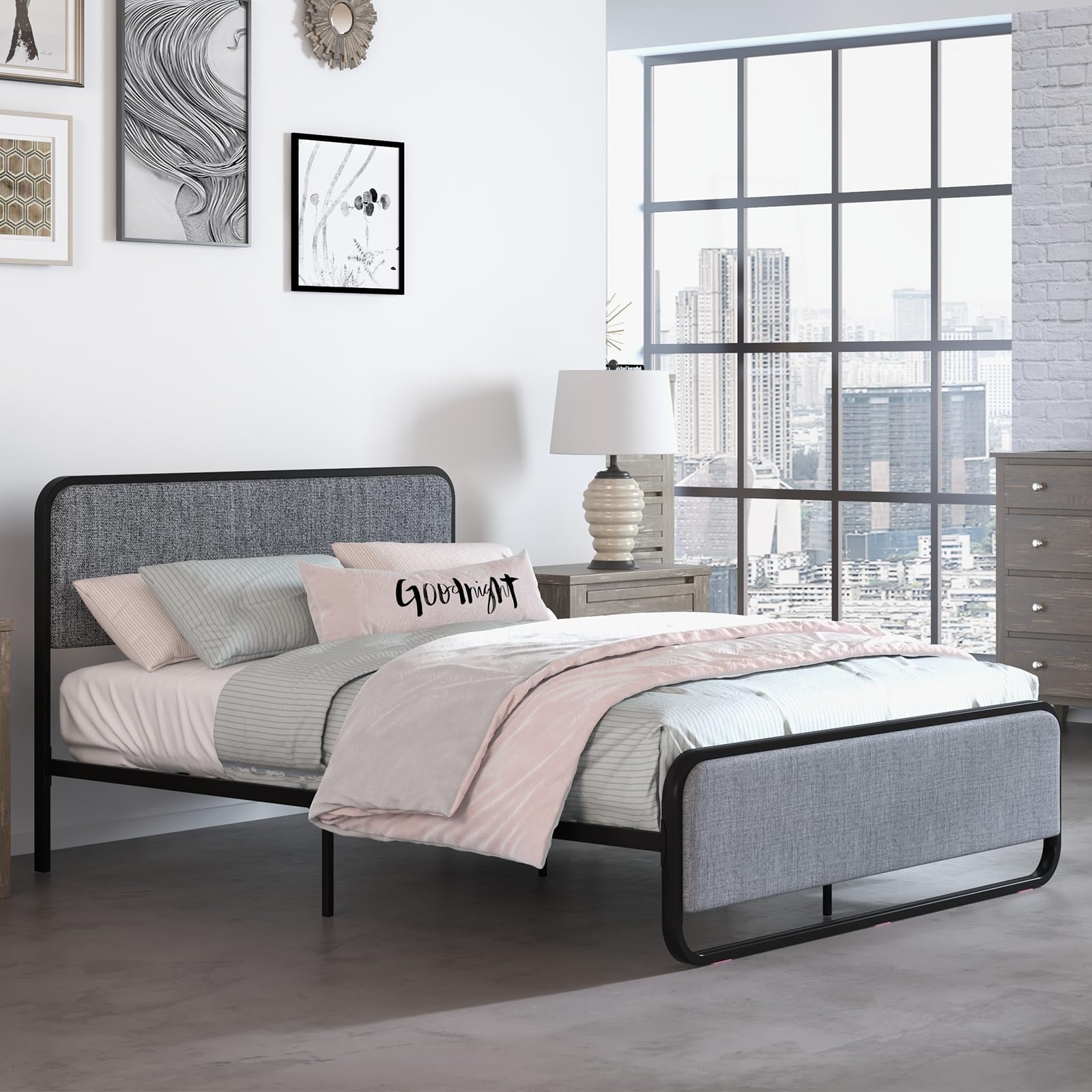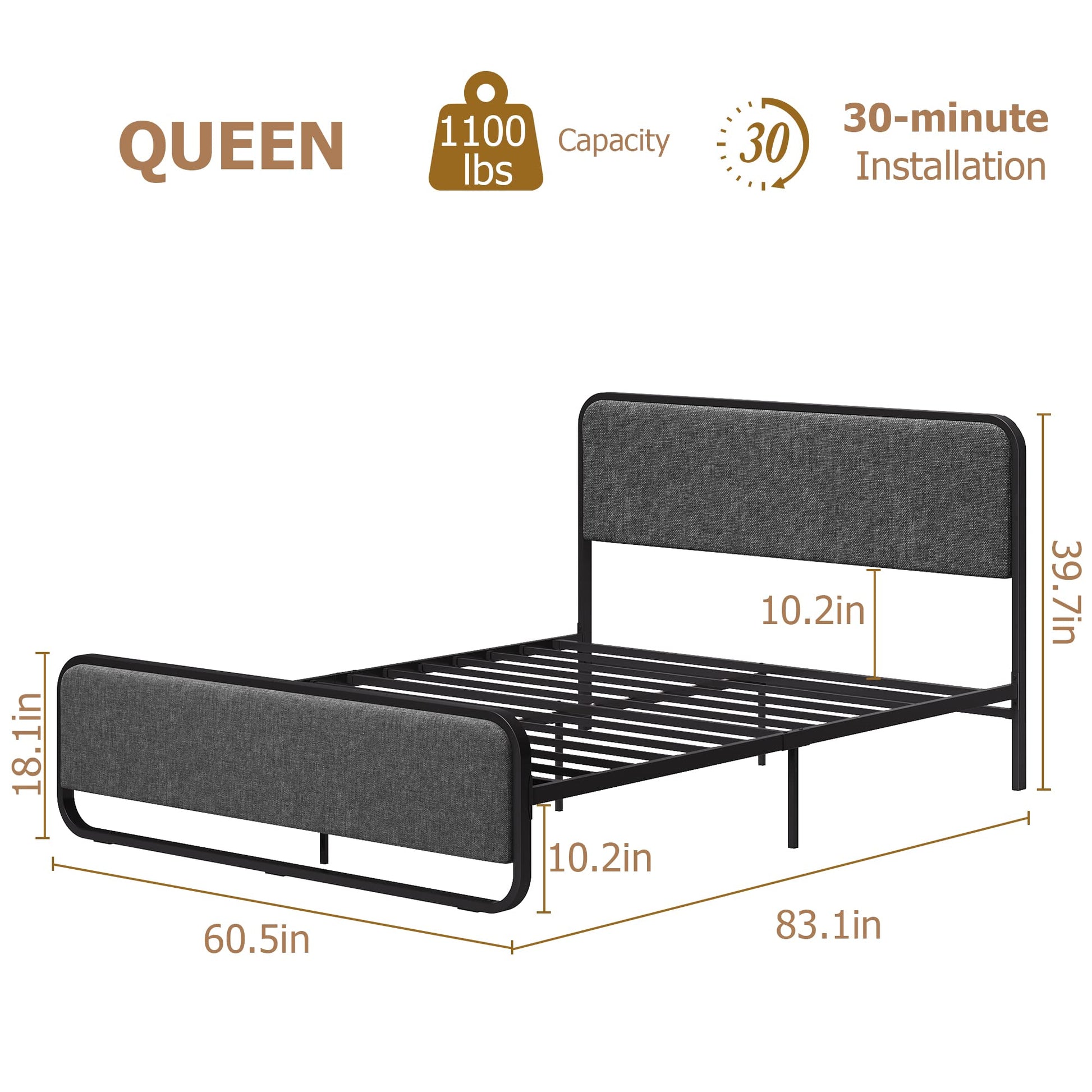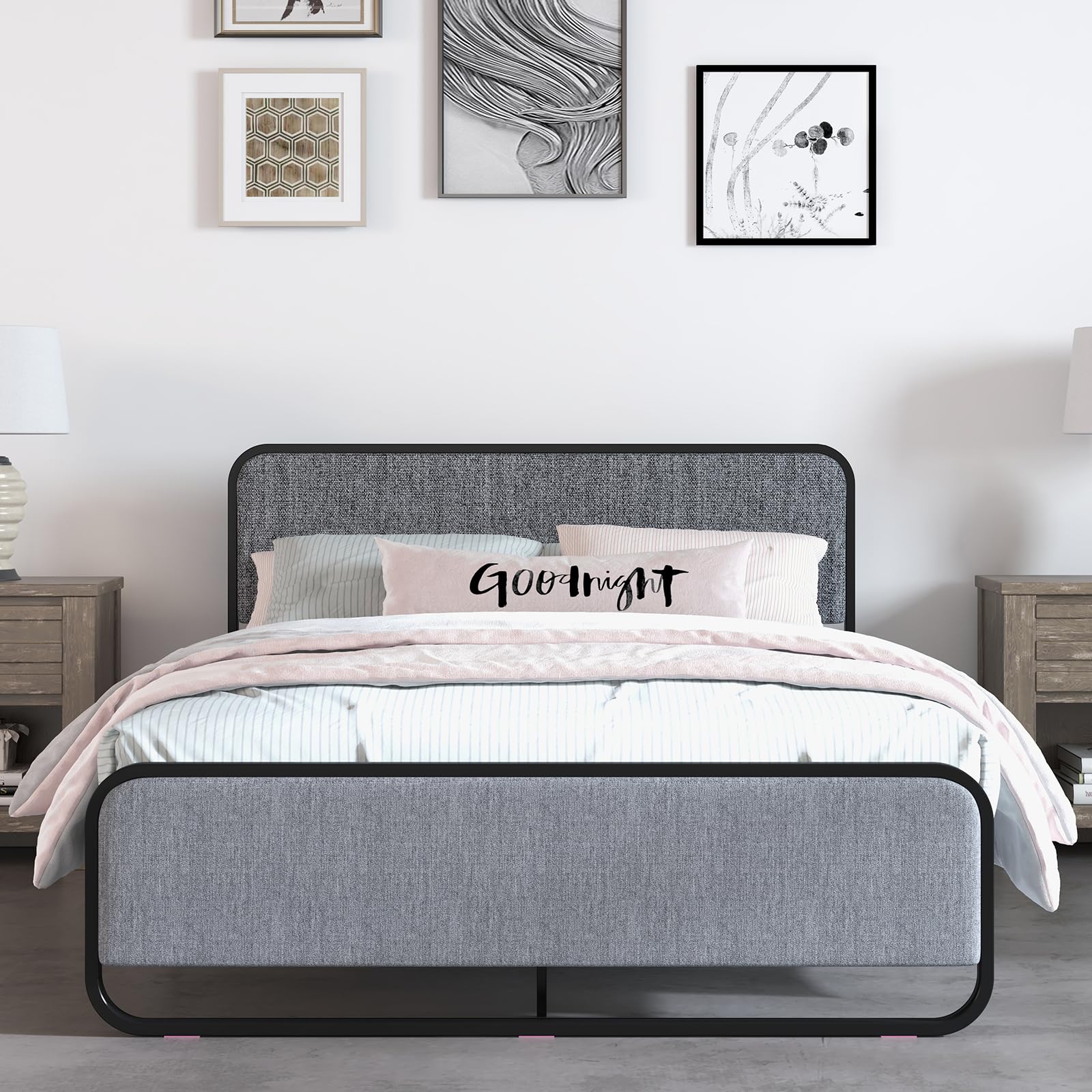 Garvee Queen Size Metal Platform Bed Frame + Curved Upholstered Headboard & Footboard + 10.3'' Underbed Space + Strong Slats Support + Grey
