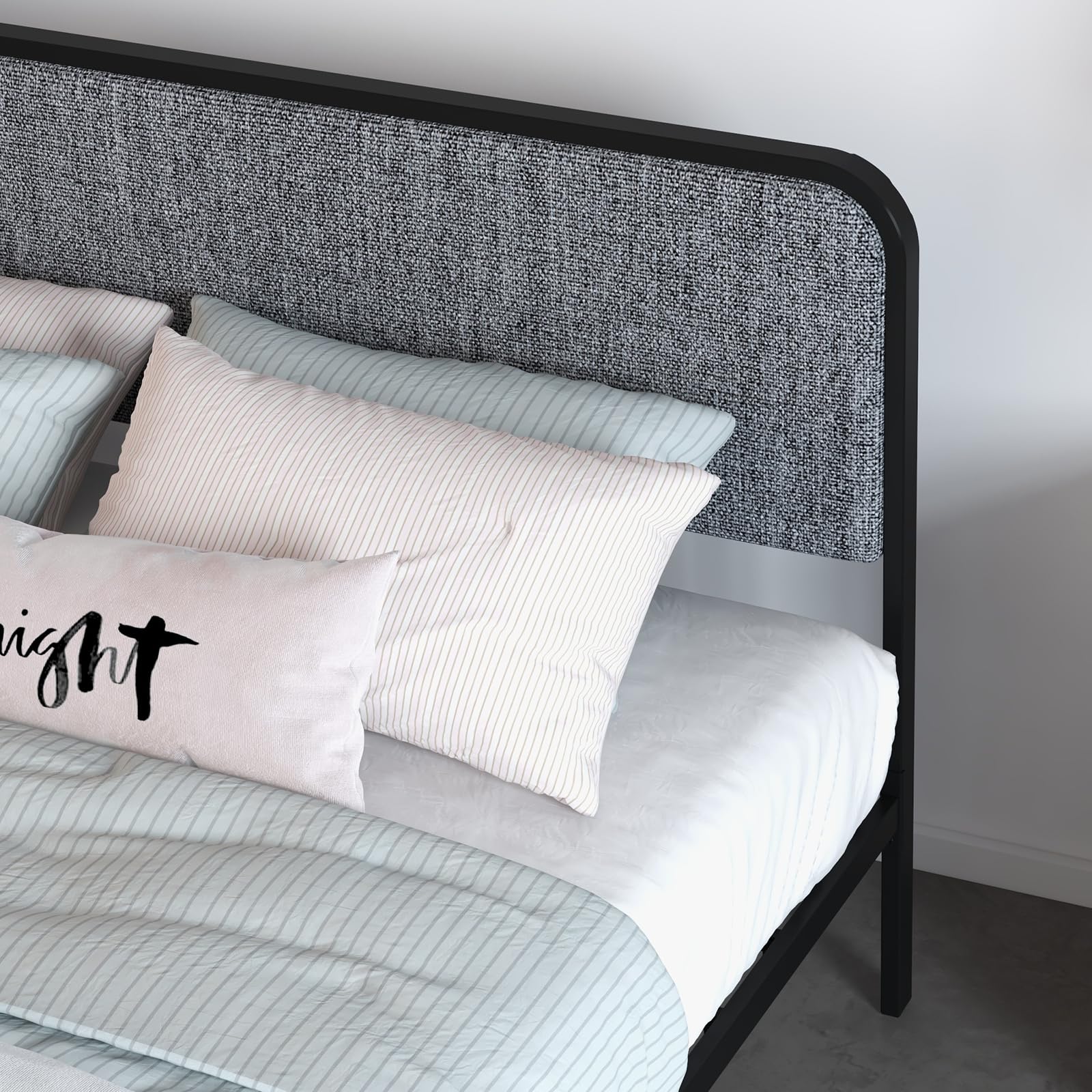 Featuring a soft fabric headboard that adds a touch of elegance and comfort to your bedroom decor.