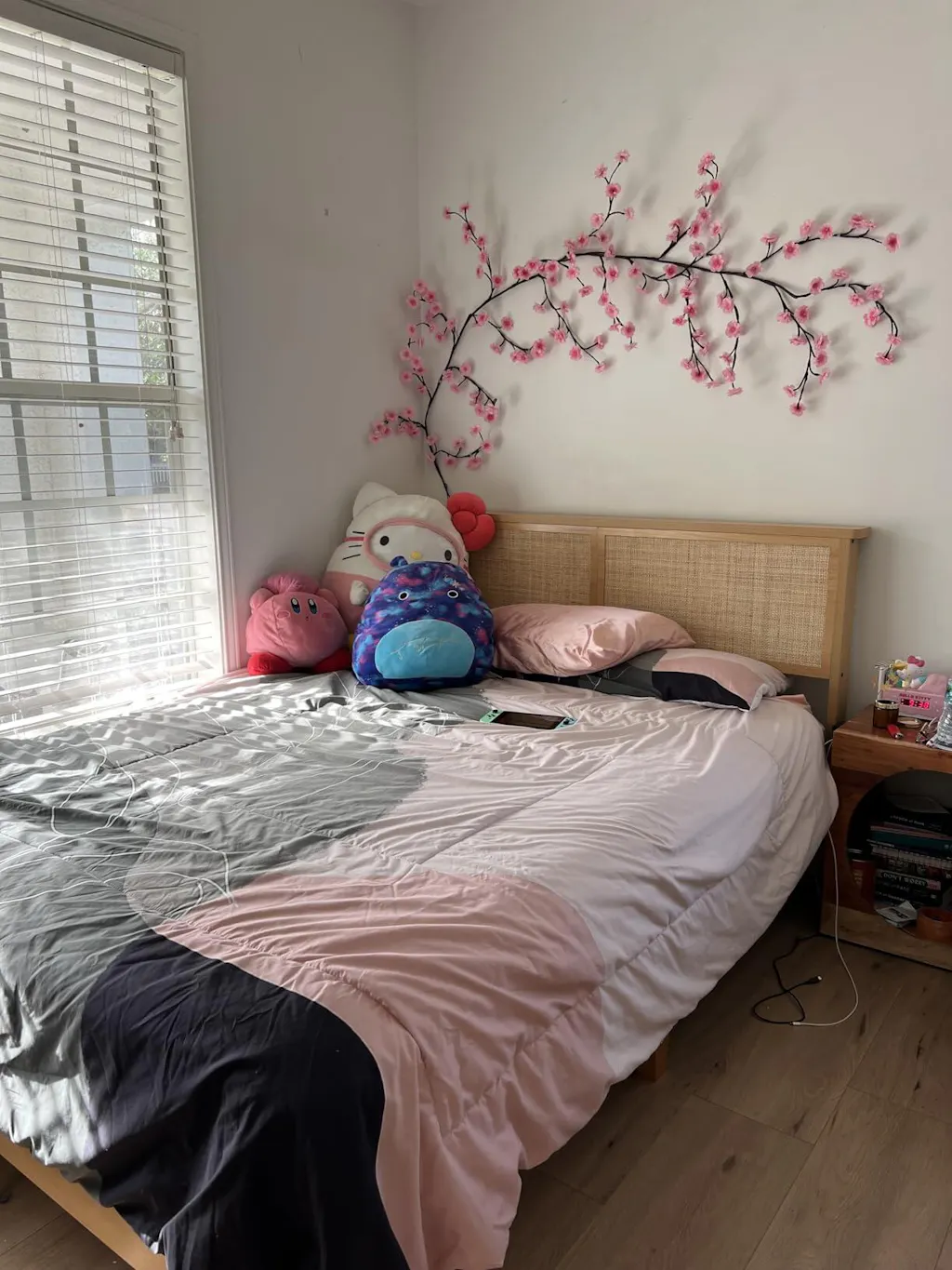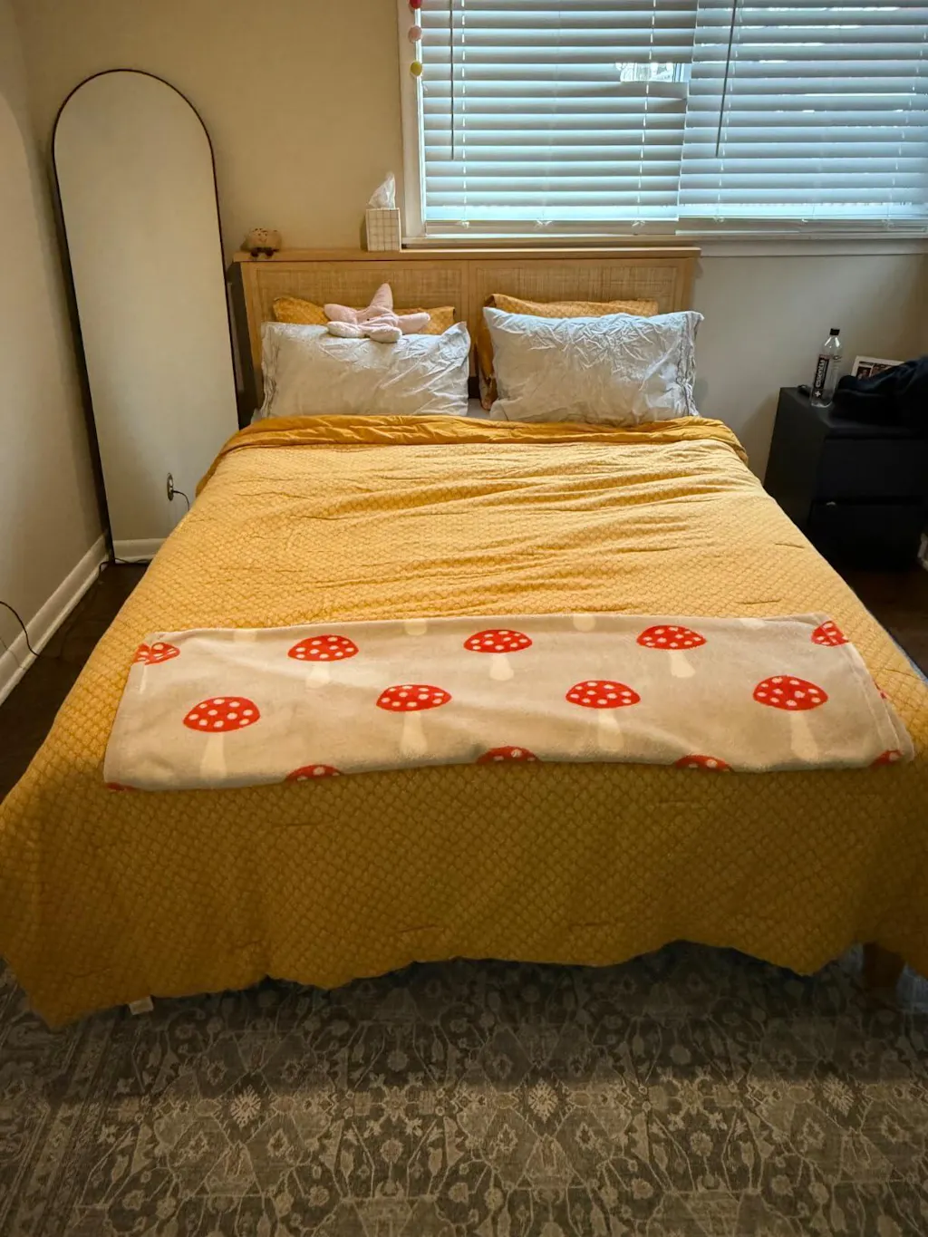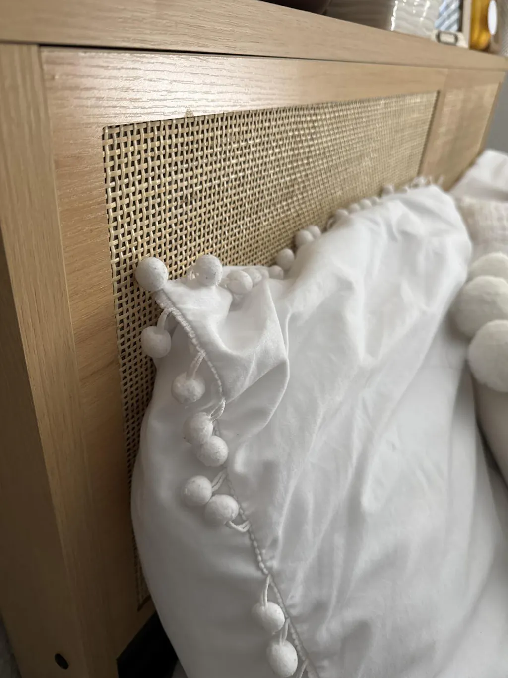 With its modern rattan panels, sturdy wooden support legs, and quiet sleep design, this bed frame combines aesthetics with functionality. The fixed wooden slats ensure stability and eliminate the need for a box spring.
