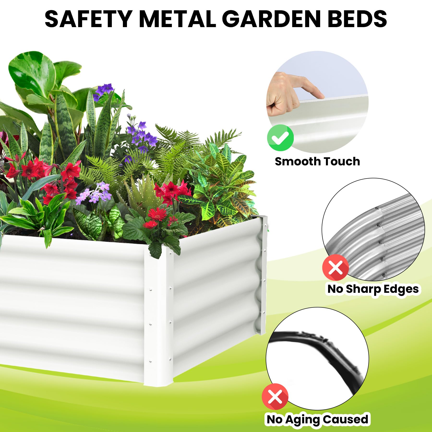 Garvee Raised Garden Bed Set of 2 6x3x1FT Galvanized Metal Durable, Open Base Safety Edge Beige for Patios Gardens