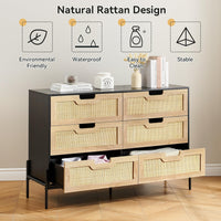 Garvee Rattan Dresser 6-Drawer Tall Dresser for Bedroom with Storage Organizer Units, Oak Color, Smooth Metal Slides, Anti-Tip Device, Natural Rattan Material, Easy to Assemble