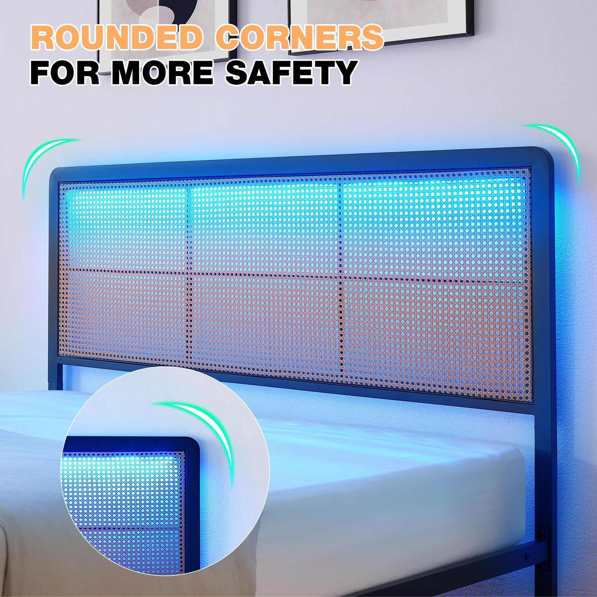 Garvee Rattan Platform Bed Frame Full Size + Modern Style + LED Light + Heavy Duty Steel Slat + No Box Spring Needed + Boho Design + Easy Assembly