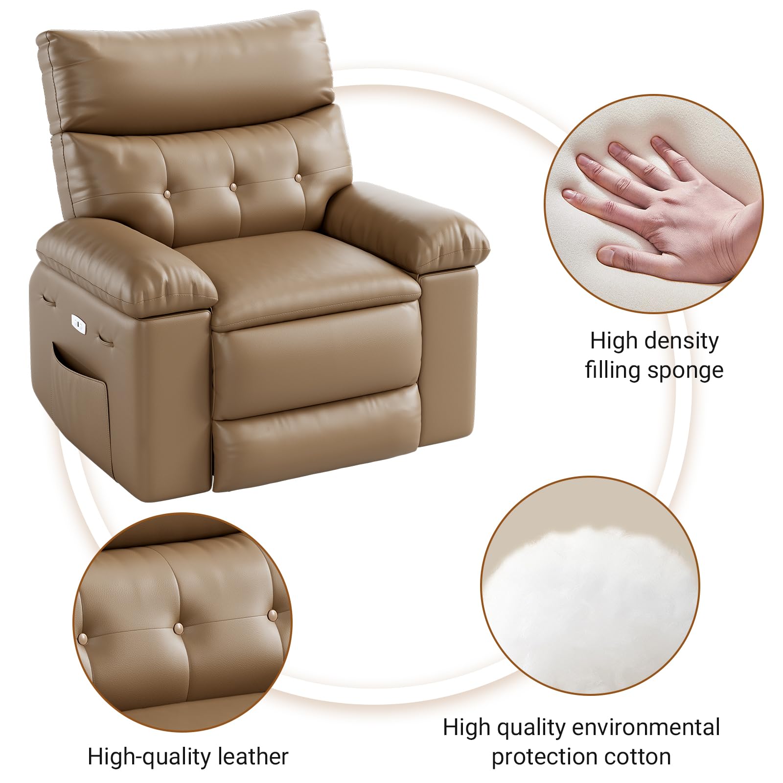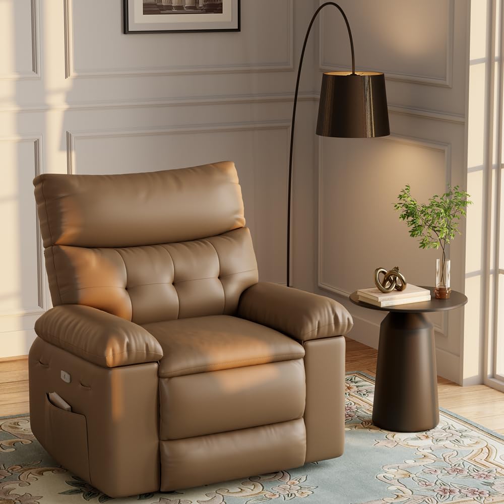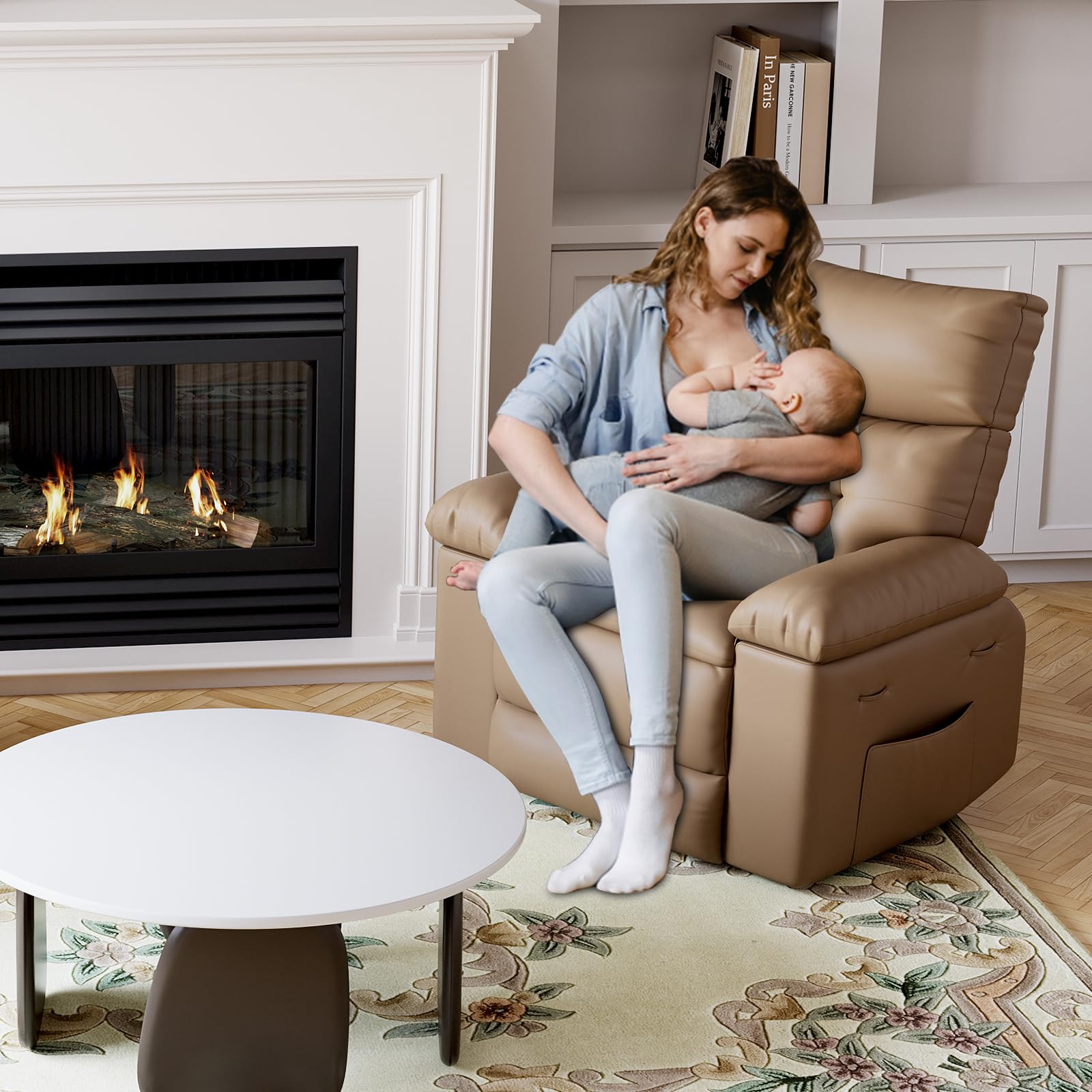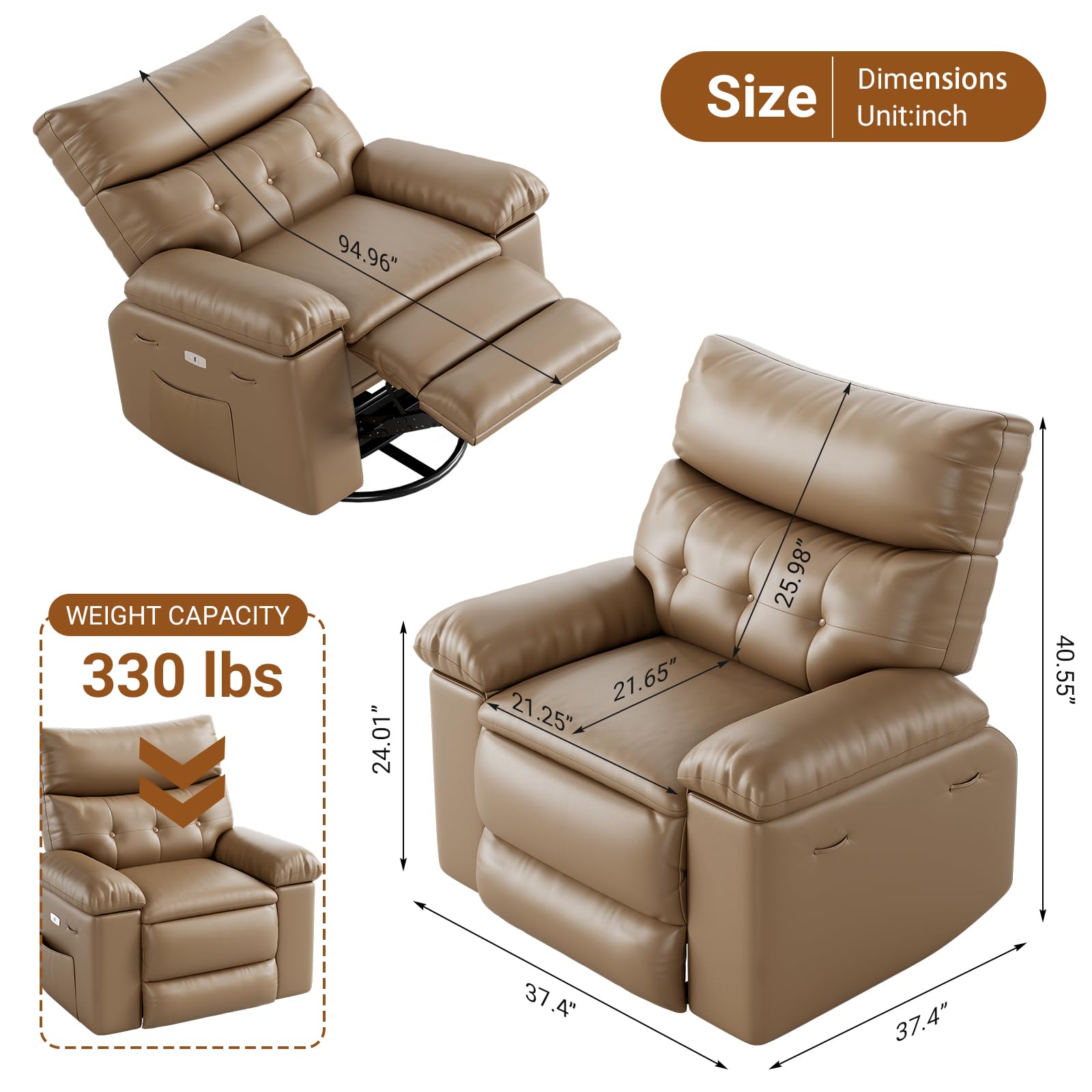 Garvee Recliner Chair for Adults,PU Leather Electric Rocker Recliner,360 Degree Swivel Lounge Chair with Side Pocket,Modern Massage Recliner Chair Sofa for Living Room,Bedroom (Light Brown)
