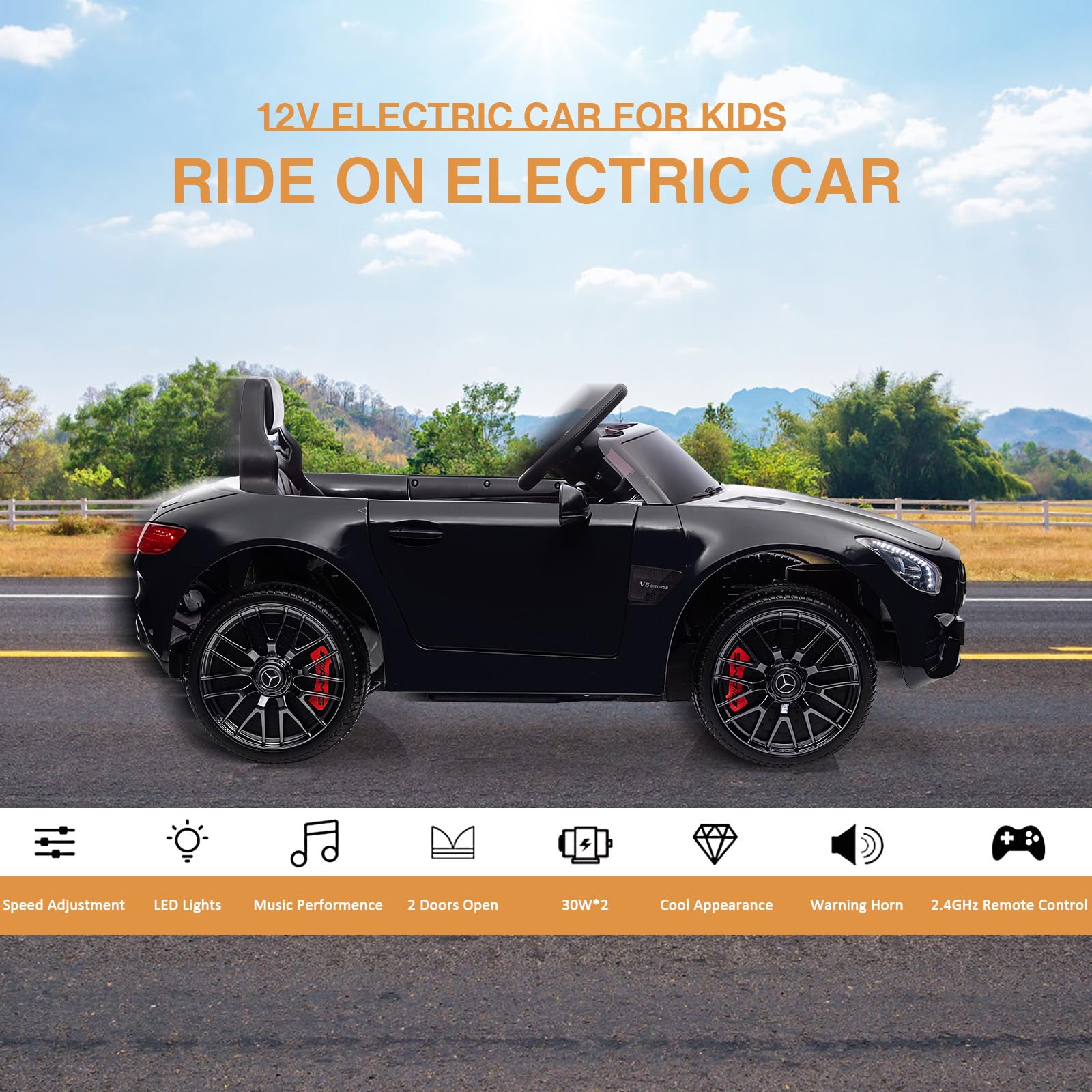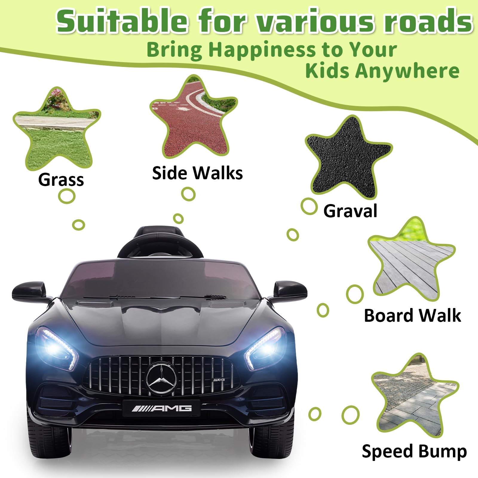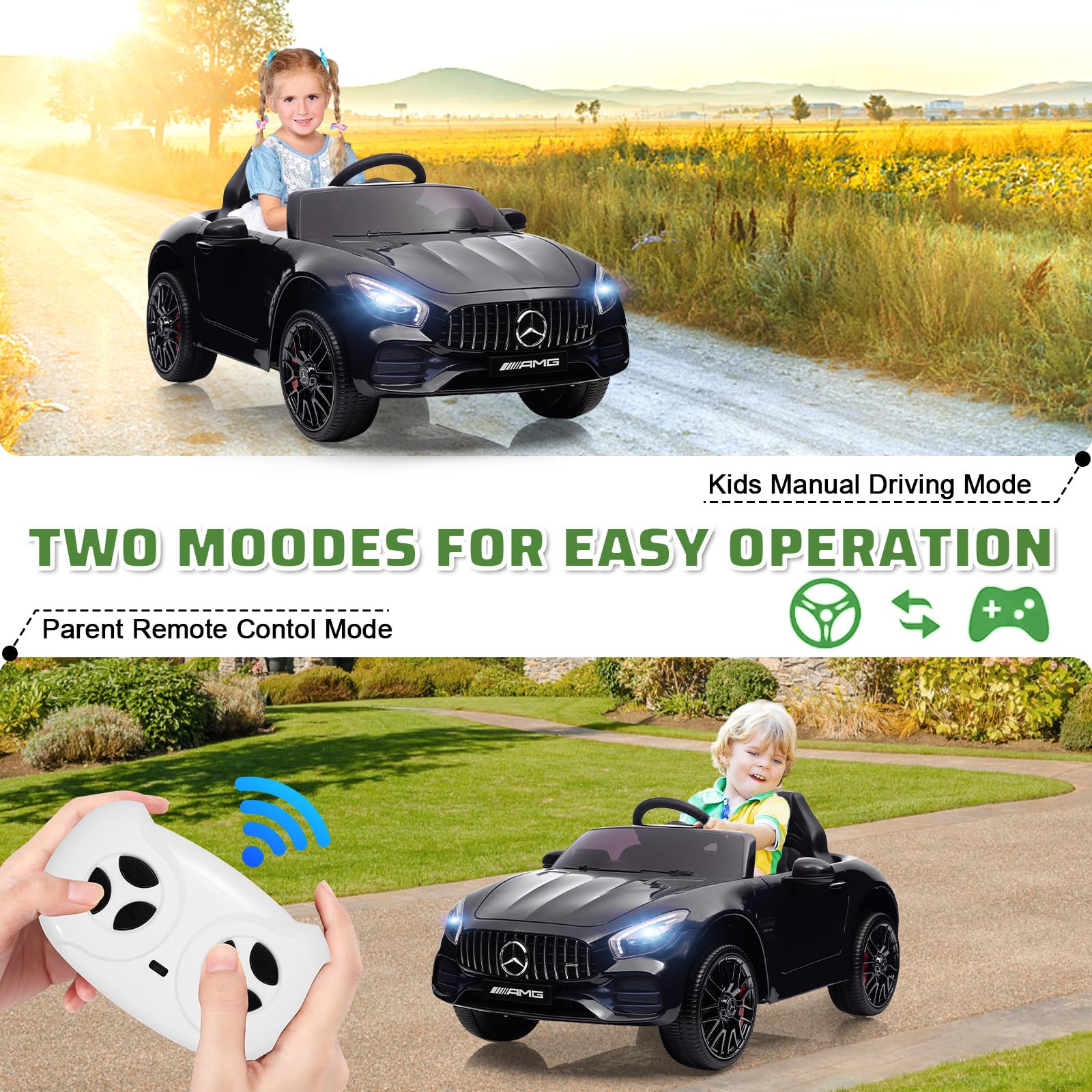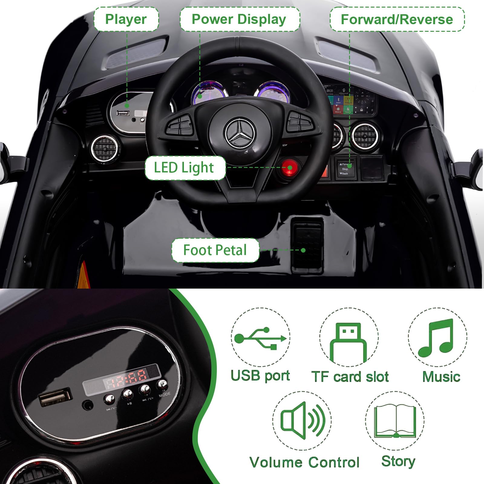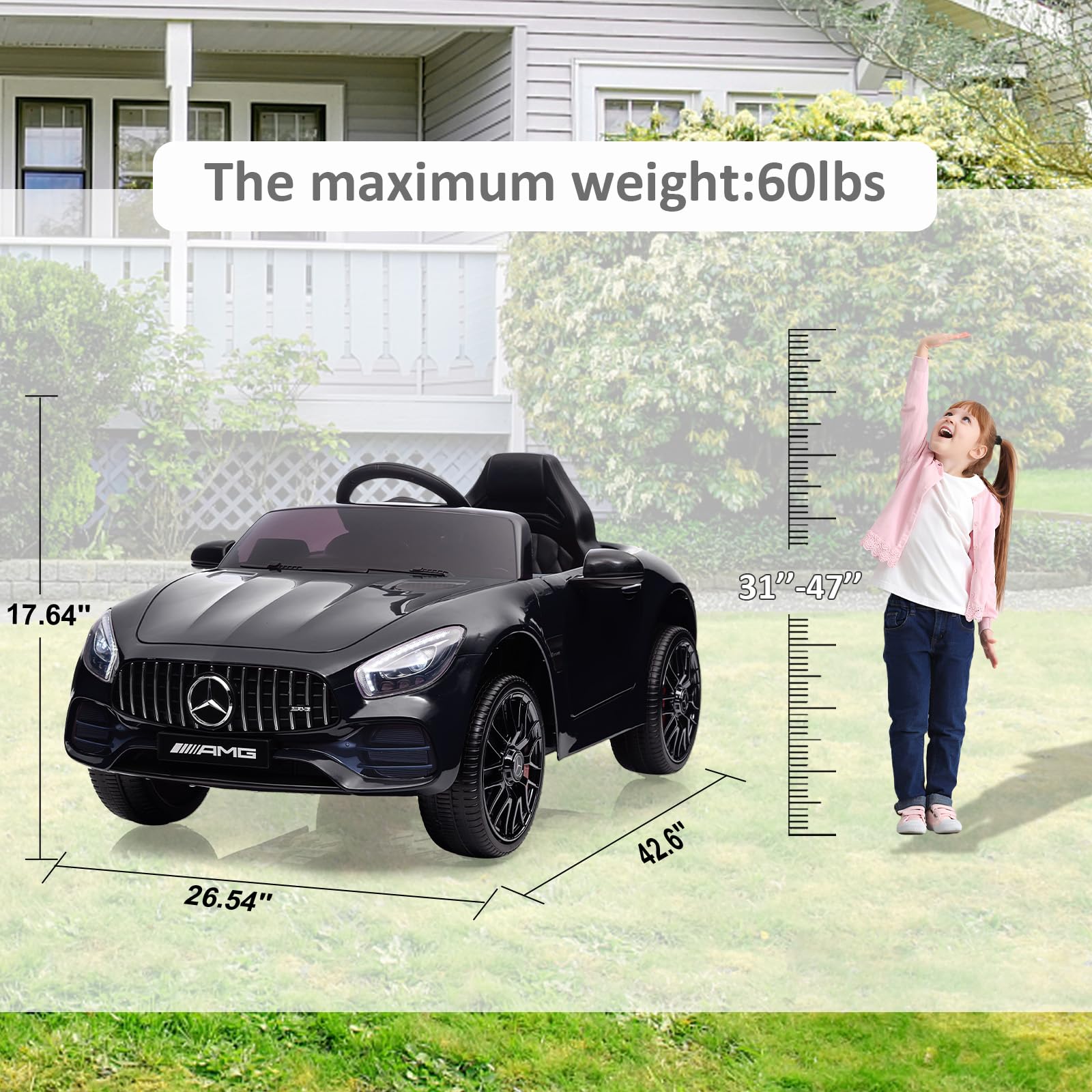 Garvee Ride Car for Kids, 12V Power Battery Electric Vehicles for 3-7 Toddlers, Licensed Mercedes-Benz with Remote Control, MP3 Player - Black