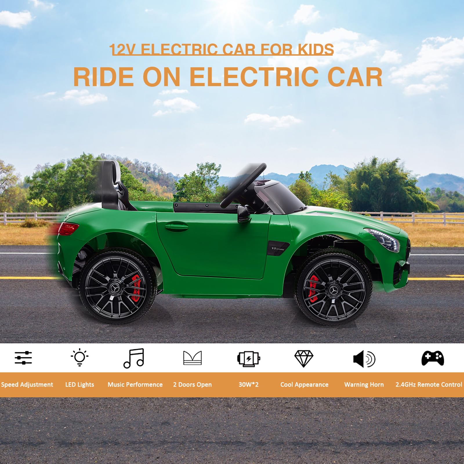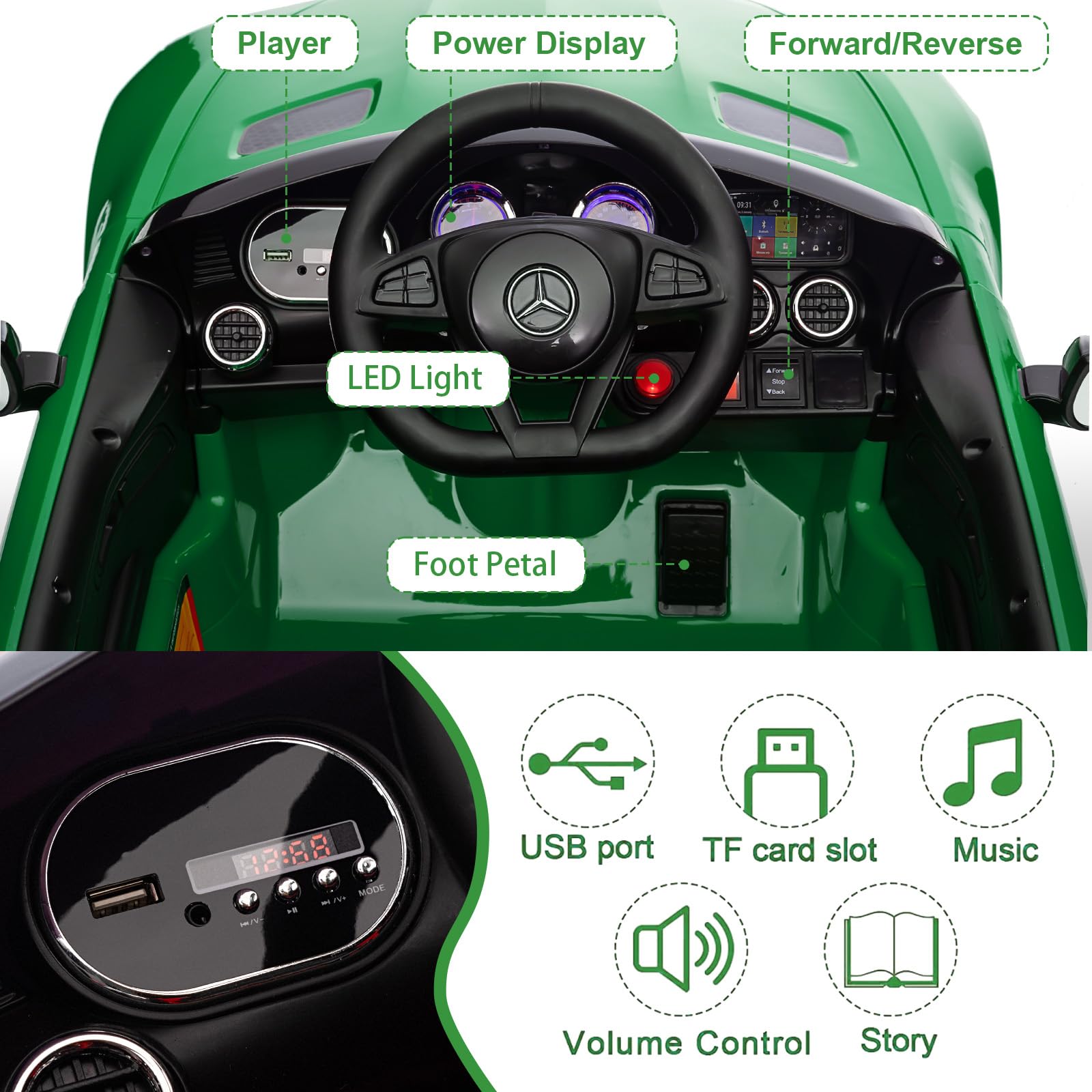 Garvee Ride Car for Kids, 12V Power Battery Electric Vehicles for 3-7 Toddlers, Licensed Mercedes-Benz with Remote Control, MP3 Player - Green