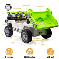 Garvee Ride - P Series: 12V Ride on Dump Truck with Remote Control, Electric Dump Bed, MP3 Player, USB Charger, All-Terrain Tires, Suitable for Indoor and Outdoor Play
