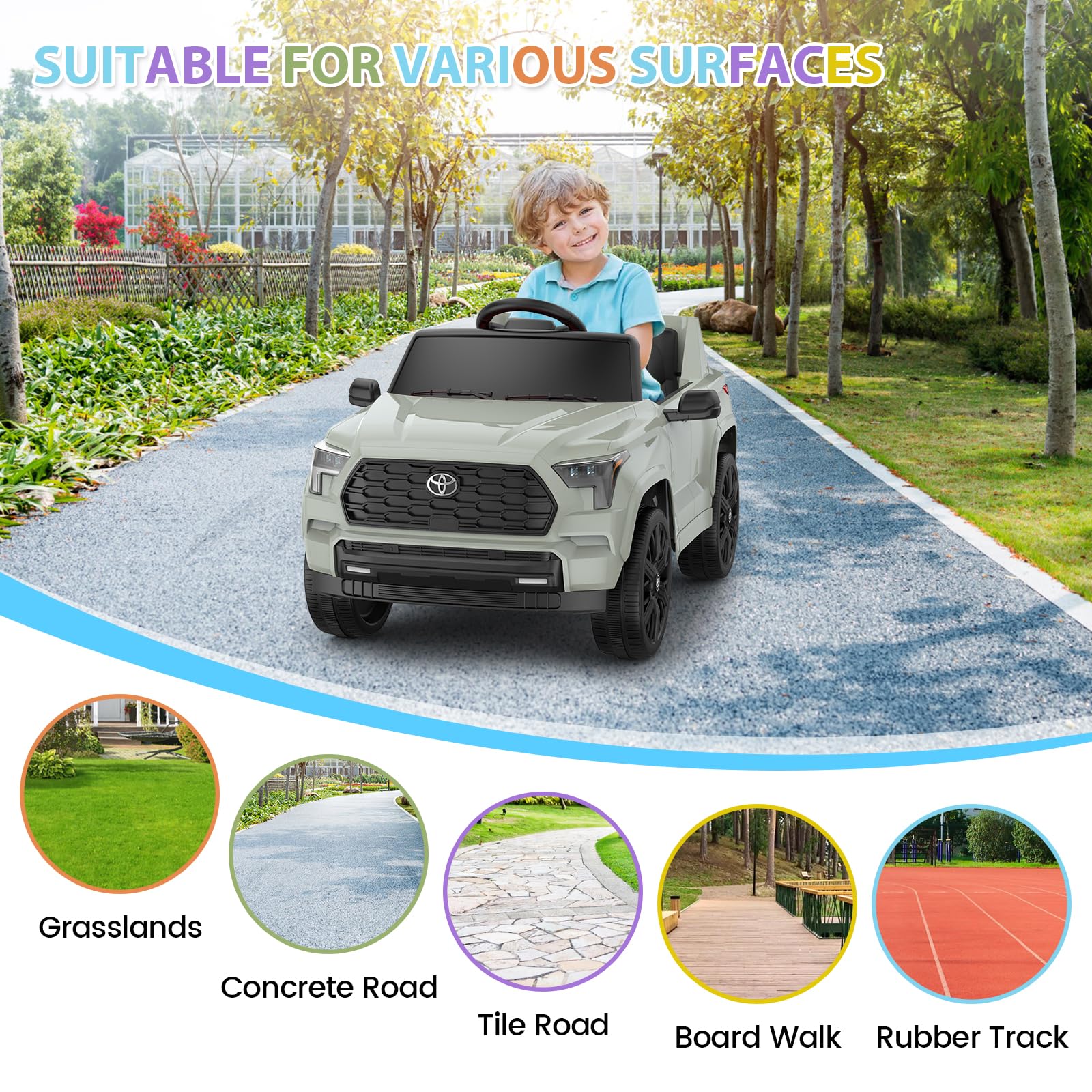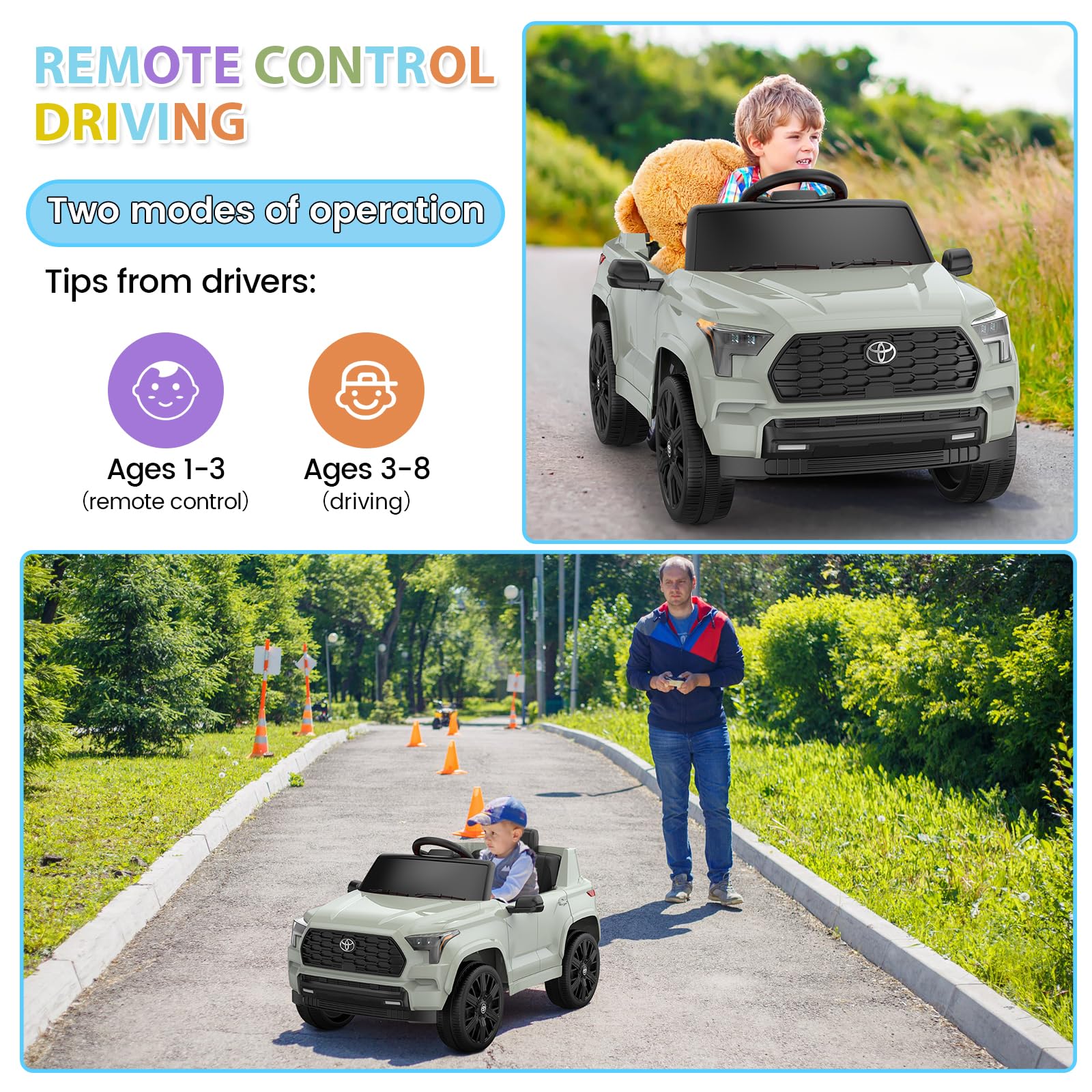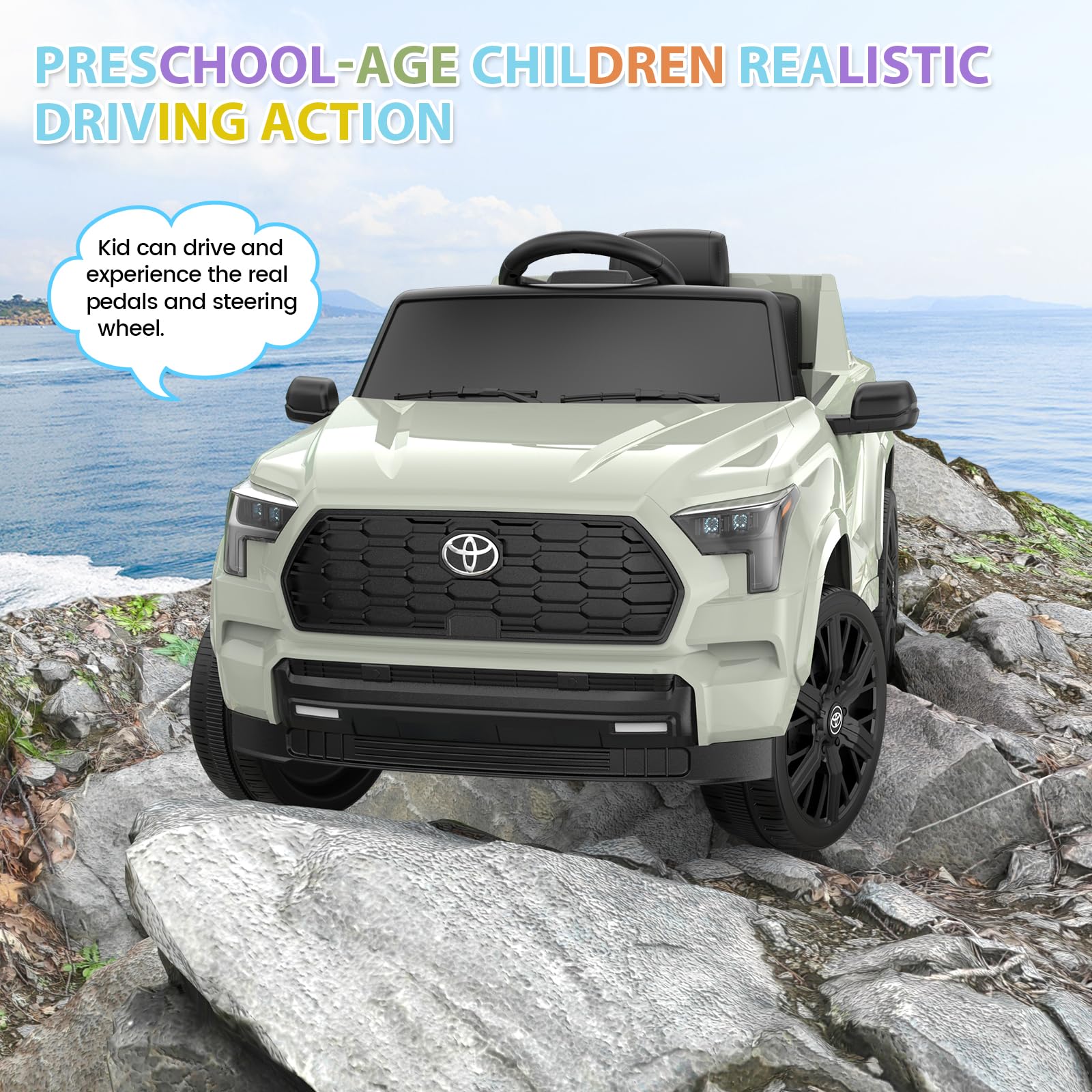 Garvee Ride on Truck Car, 12V Licensed Toyota Electric Cars for Kids, Ride on Toys with Remote Control, Spring Suspension, LED Lights, Bluetooth, 3 Speeds - Green