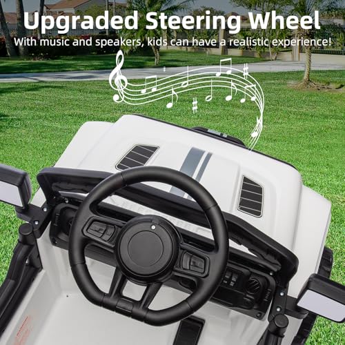 - 【Upgraded Steering Wheel】Compared with other electric vehicle, our electric vehicle are equipped with music and speakers on the steering wheel, so kids can have a more realistic driving experience and more fun!