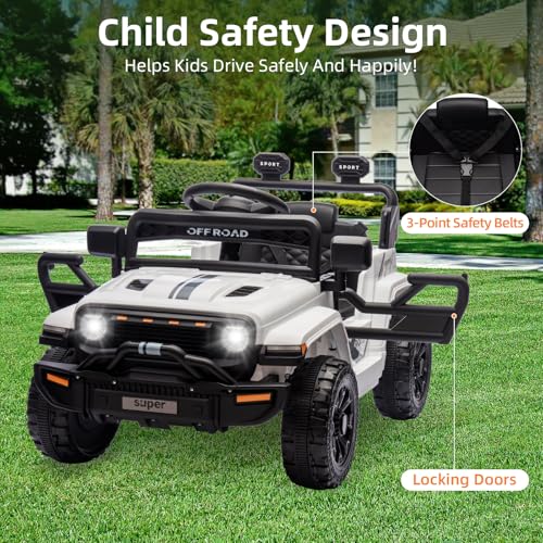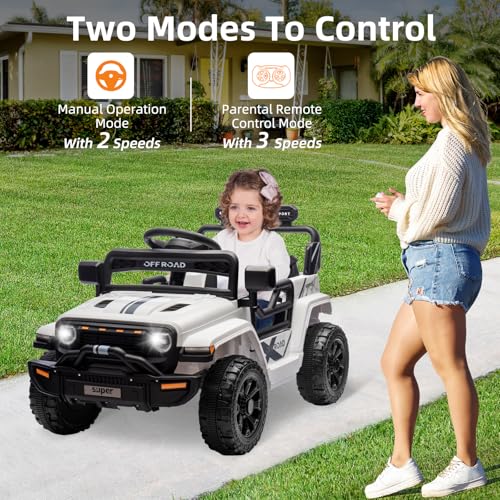Garvee Ride - P Series: 12V Ride On Toy w/Parent Remote Control, Steering Wheel Music, 4-Wheel Spring Suspension, Led Lights, 2 Speeds, Kids Electric Vehicles for Age 3-5, White