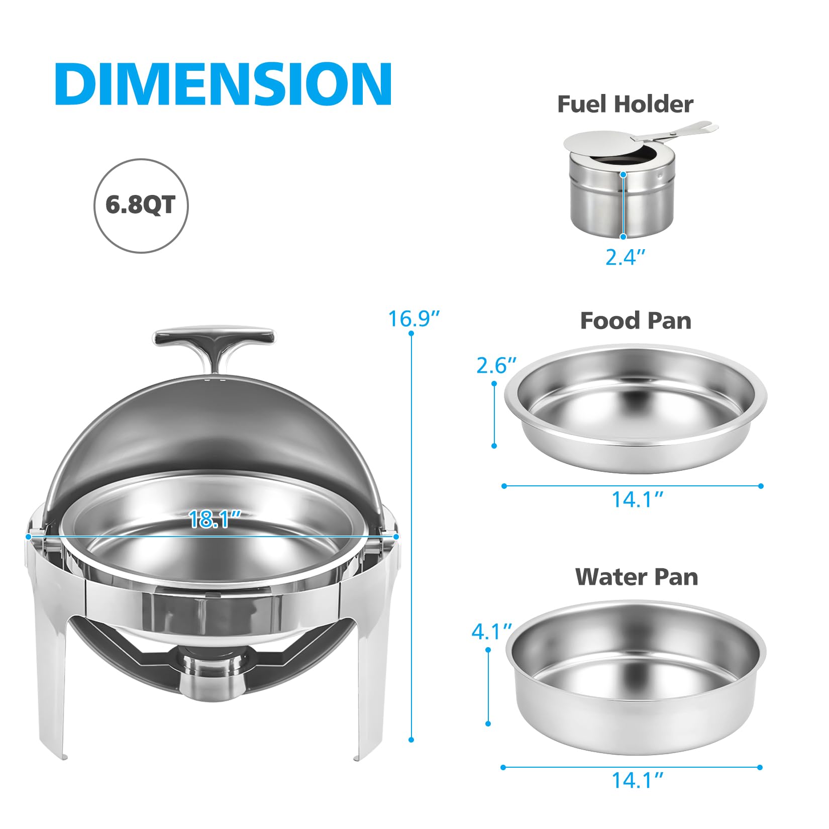 Garvee 6.8QT Roll Top Chafing Dish Buffet Set,Full Size Stainless Steel Pan Chafer, Round Catering Warmer Server, for Wedding, Parties, Banquet, Catering Event,1 Pack