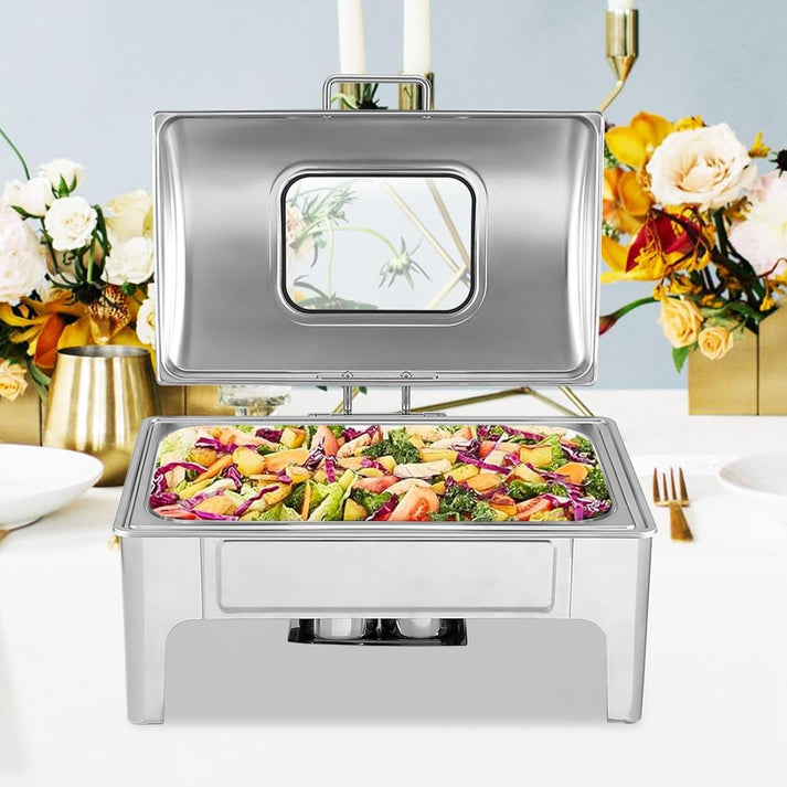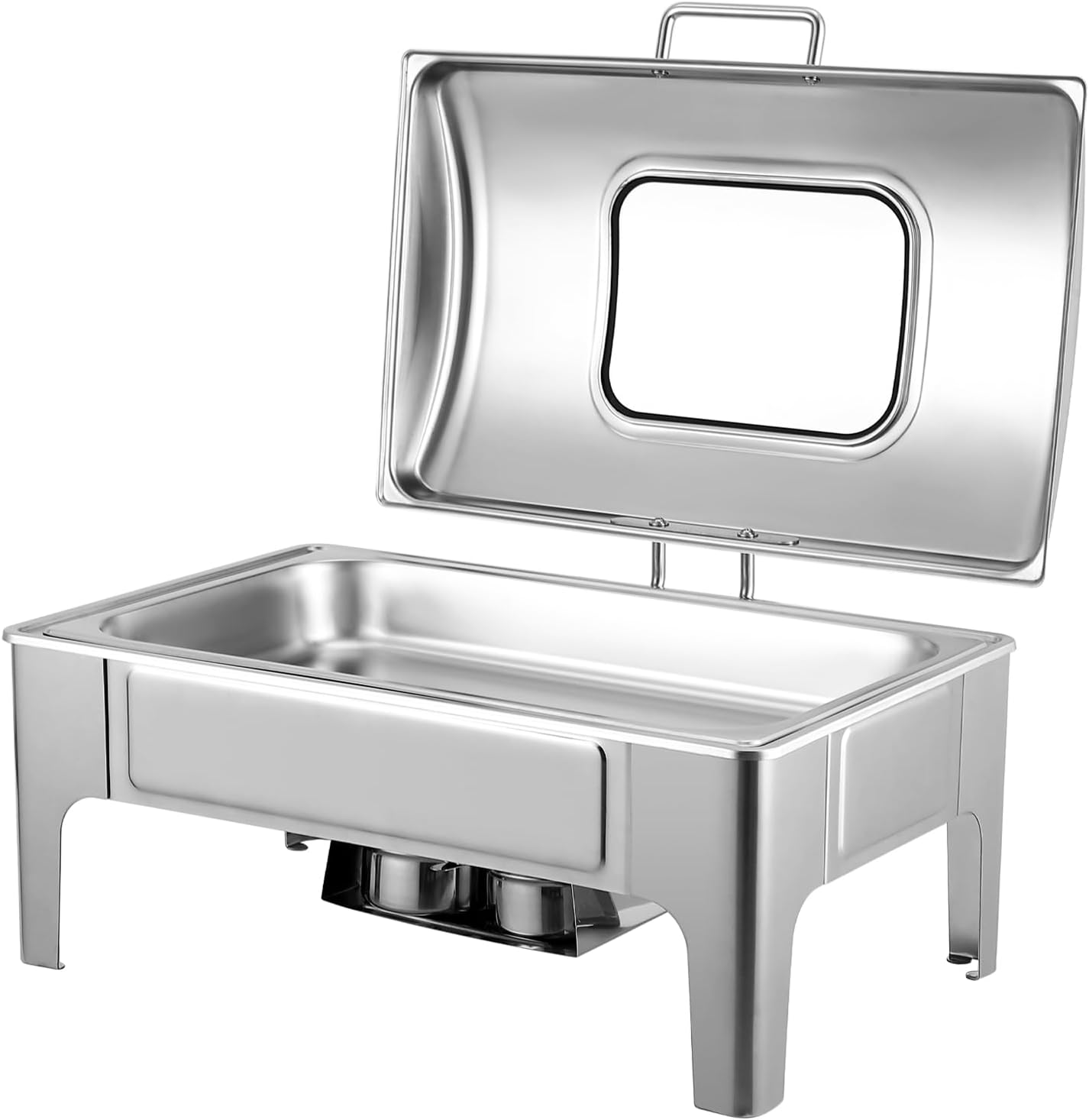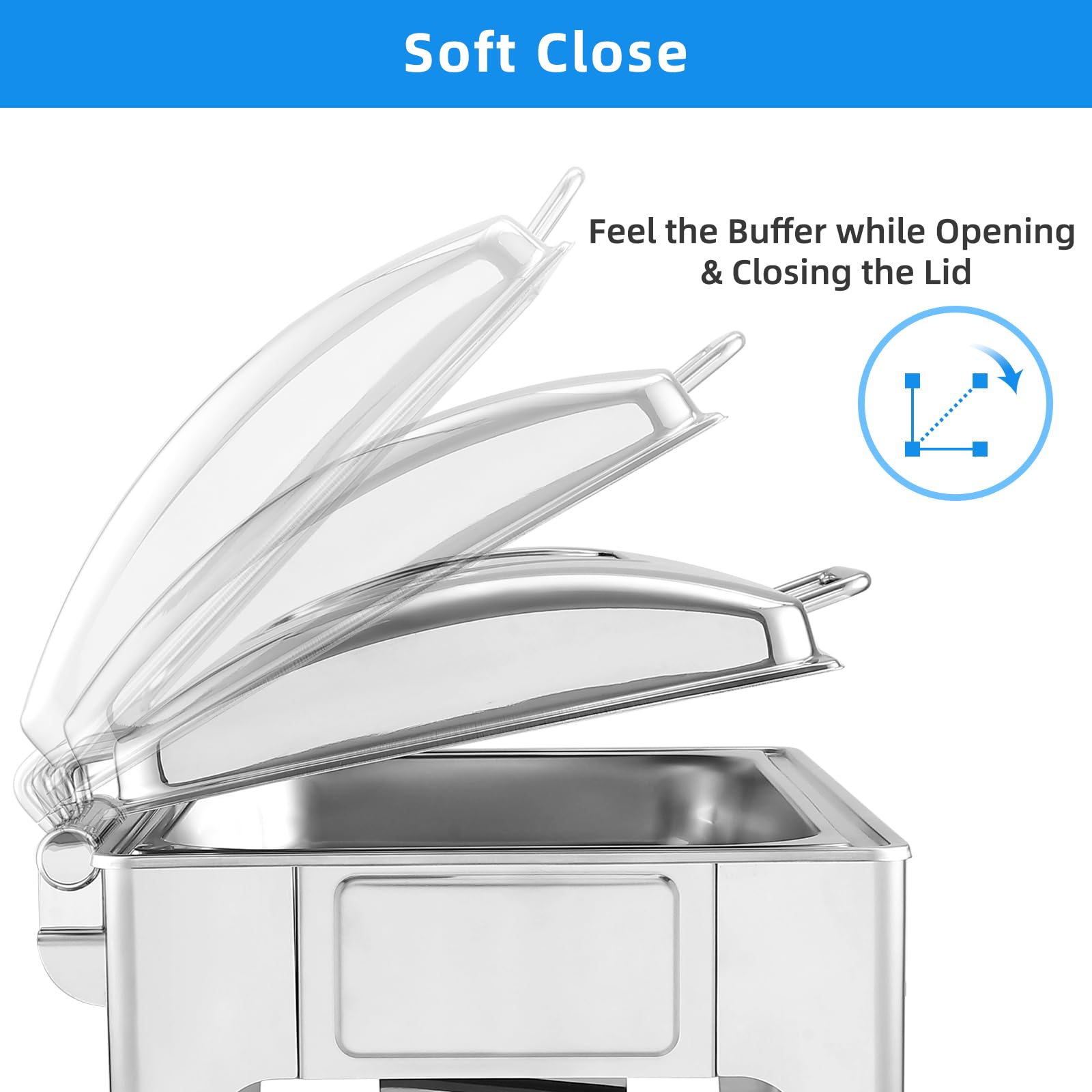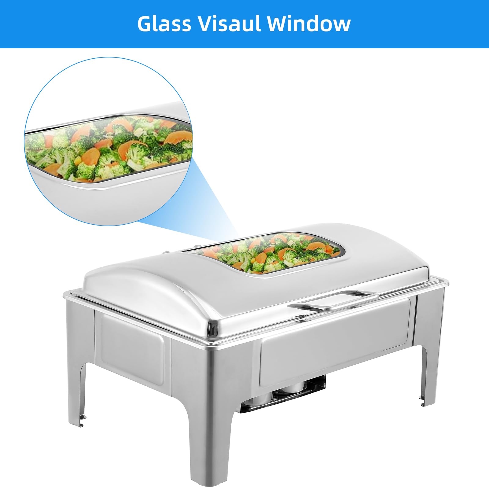 Garvee 9 Quart Roll Top Chafing Dish Buffet Set, Full Pan Chafer, Rectangle Hydraulic Pressure Stainless Steel Set, for Wedding, Parties, Banquet, Catering Event, 1 Pack
