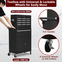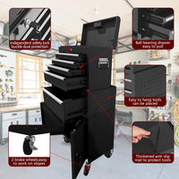 - Enhanced Mobility and Flexibility: Our tool cabinet on wheels provides convenience, allowing you to easily transport your tools wherever needed. The versatile, 2-in-1 detachable design, features four smooth universal wheels, two of which are lockable for added stability. A locking bar ensures drawers stay secure while moving, while the top box includes two handles for easy lifting, and the bottom cabinet has hand bars for effortless maneuverability.