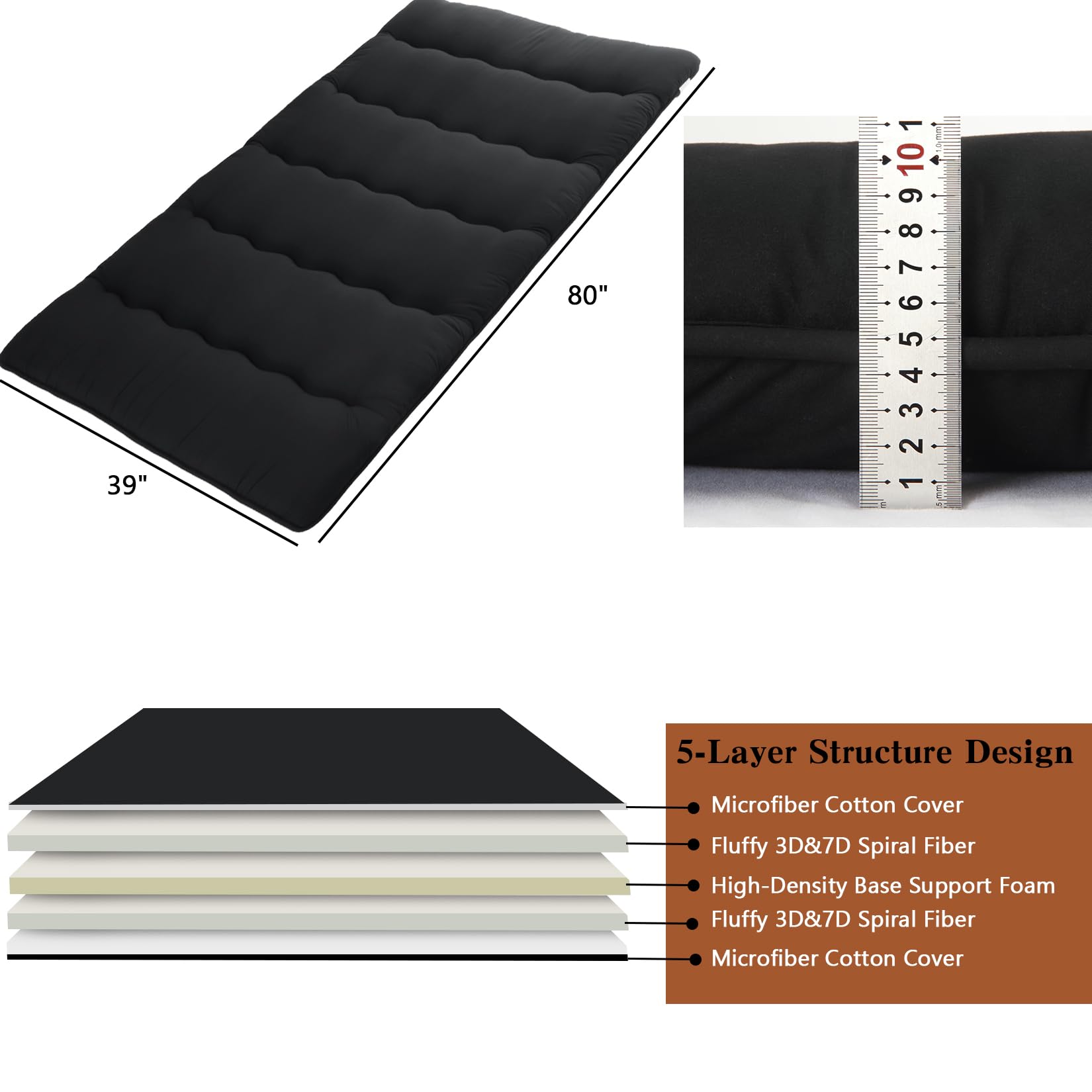 Garvee Japanese Futon Mattress - Twin/Full Size - 5-Layer Support - Microfiber Cotton - Roll Up & Foldable - Ideal for Camping & Guest Rooms