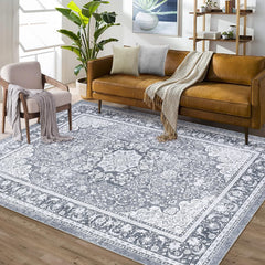 Garvee Vintage Area Rug 5x7 Machine Washable Floral Distressed Carpet Rug Retro Medallion Stain Resistant Non-Slip Accent Rug Coffee Table Rug Farmhouse Dining Office Bedroom Decor, Grey