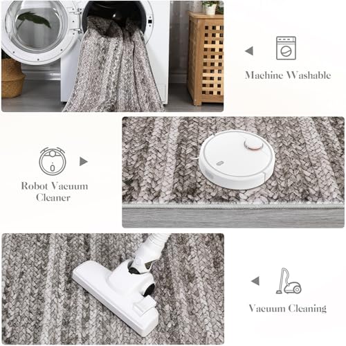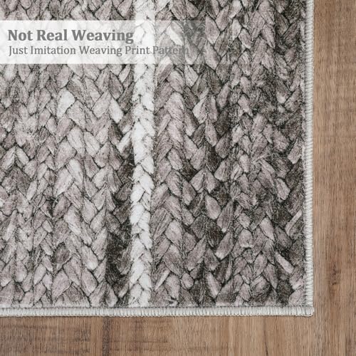 Garvee Modern Grey Camel 2x6 Runner Washable Rug Non Slip Entryway Rug Low Pile Kitchen Rug Bath Rug Hallway Rug Modern Accent Rug Contemporary Faux Woven Indoor Printed Rug for Office Bedroom