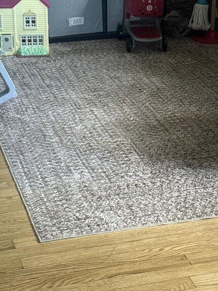 We needed just a small area rug to accent our living room and protect the floor from a heavy coffee table. This rug is “thin” but it has an antislip backing which is nice. The material itself is very soft and feels really nice on bare feet.The edge stitching is nice and tight, no frayed threads or runs out of the box. It comes folded for shipping but that means the folded pleats are “stuck” (see photo). I’ve tried steaming the folds and ‘reverse folding’ them to see if they’ll go away, but a week later if being on the floor, the folds are still prominent.Overall an attractive rug, color matched our couch and it will do the job.