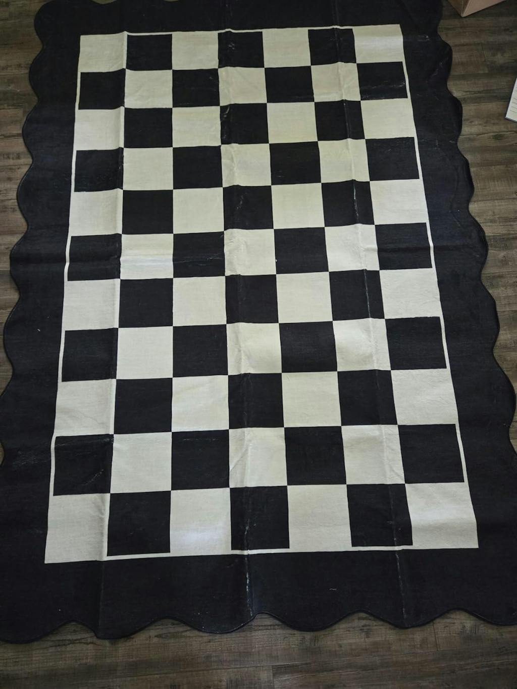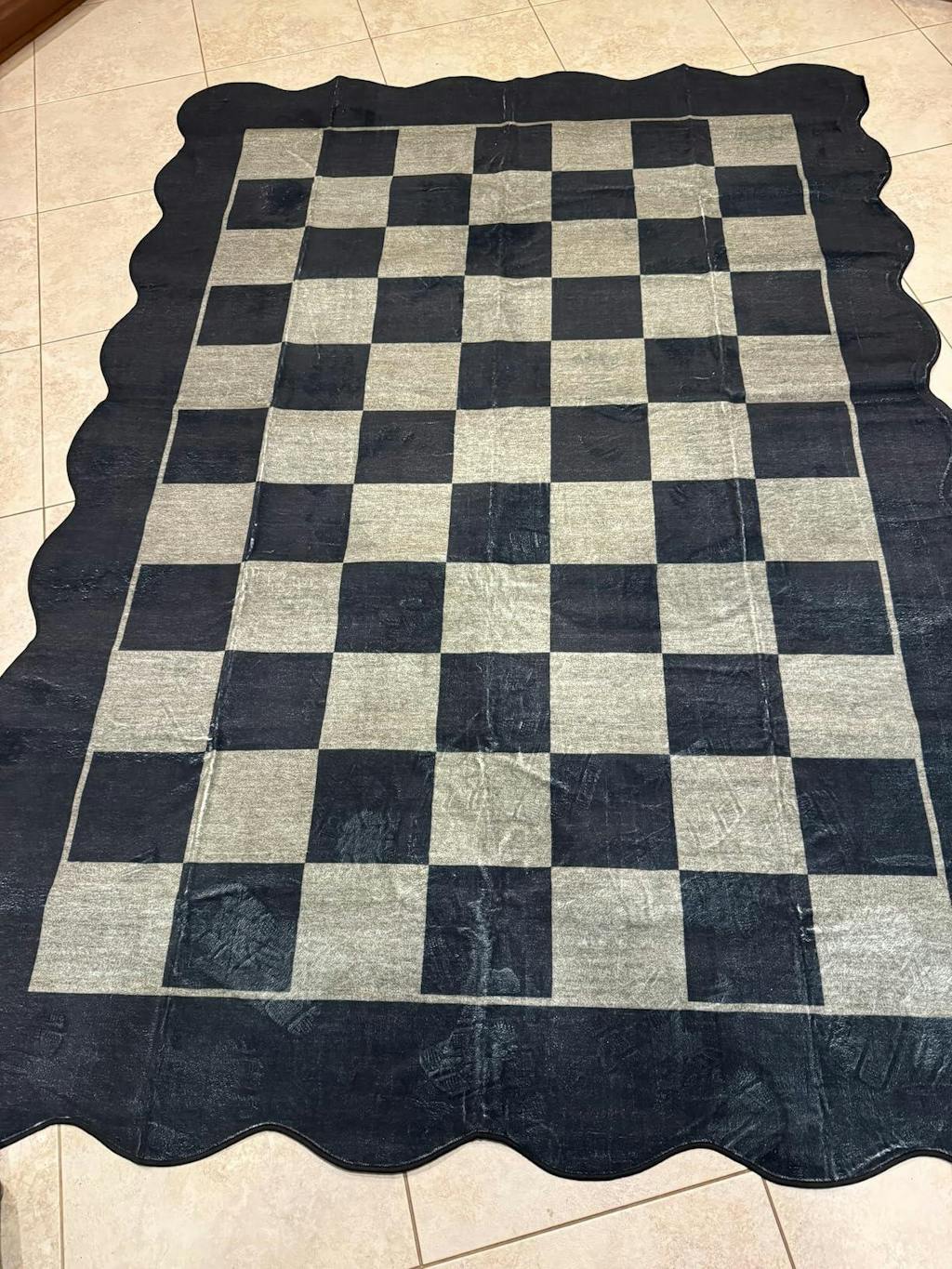 - 【Modern Design】: The bedroom rug is designed with a regular checkerboard pattern as its core. The neatly arranged squares create a sense of order and symmetrical beauty, presenting a classic and enduring visual effect. The unique scalloped edge design around the chessboard pattern is particularly eye-catching. The soft and undulating lines form a unique border, adding a touch of liveliness and fun, which can easily adapt to different interior styles such as modern, simple, and retro.