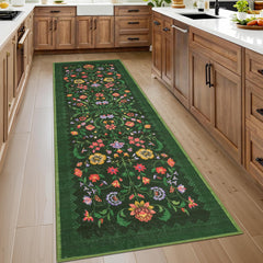 - FLORAL VINTAGE BOHO RUG: Inspired by pastoral charm, has a deep base color, vivid floral patterns. This floral boho rug runner woven by machine, the Vintage-inspired design is digitally printed which details can’t be replicated by hand. The washable rugs 8x10 are suitable for entryways, bathrooms, kitchens, living rooms, bedrooms, kids' playrooms, and offices. This boho rugs for living room has ultra-thin profile that allows easy placement under furniture brings a nostalgic, romantic, nature - filled vibe to any space.