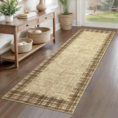 Garvee Rugs for Living Room 8x10 Machine Washable Area Rug Modern Plaid Rugs Large Rug Non Slip Low Pile Indoor Floor Cover for Bedroom Home Decor, Jute
