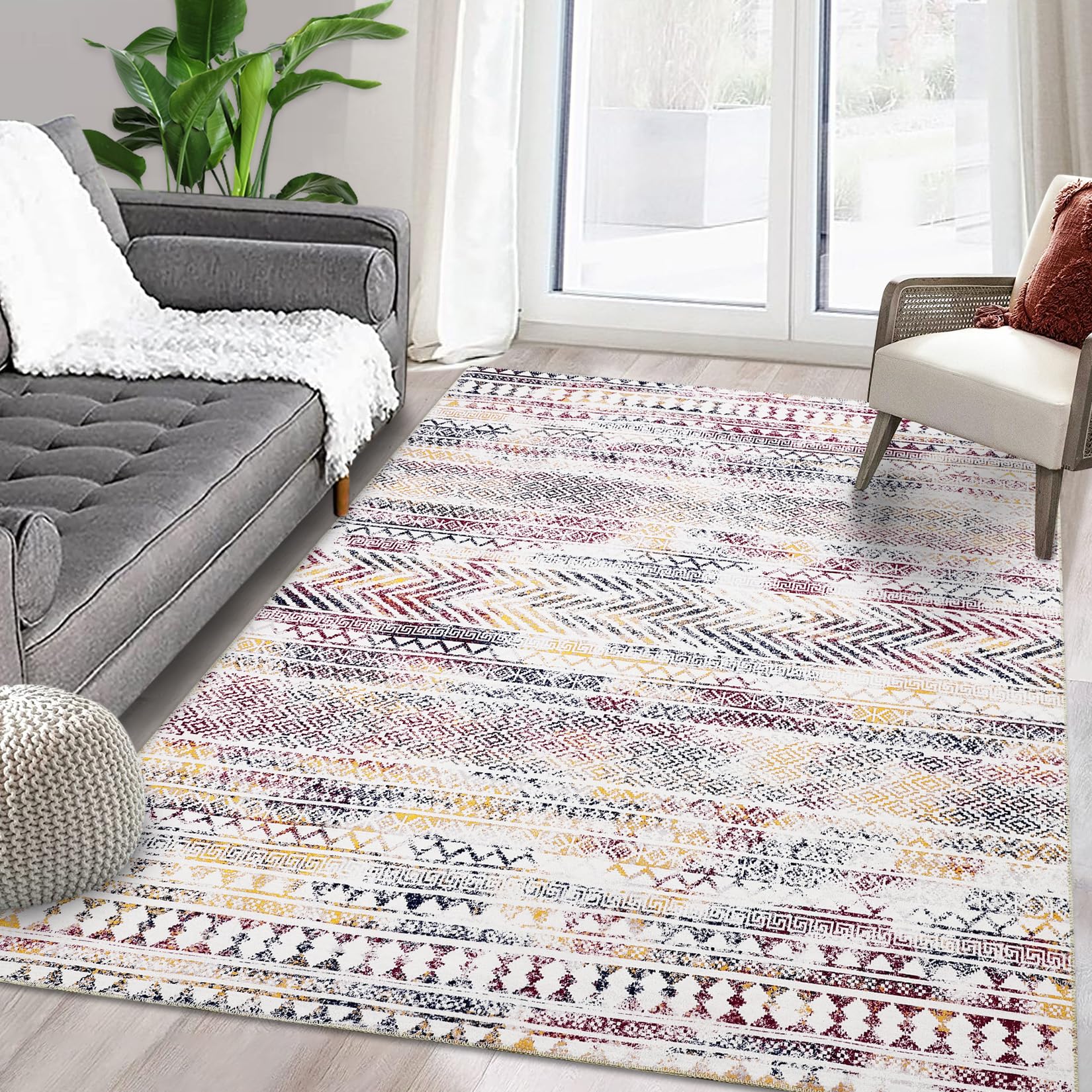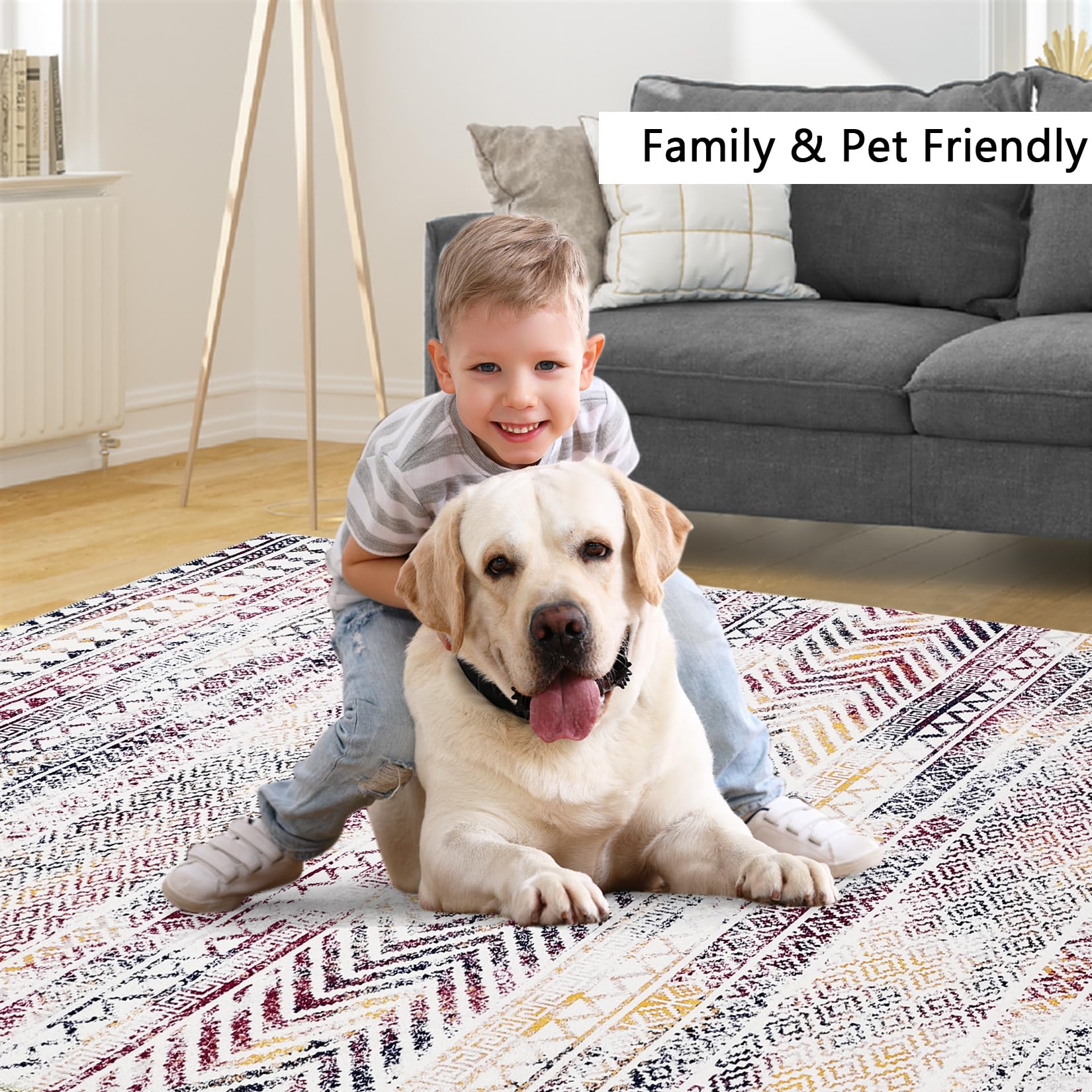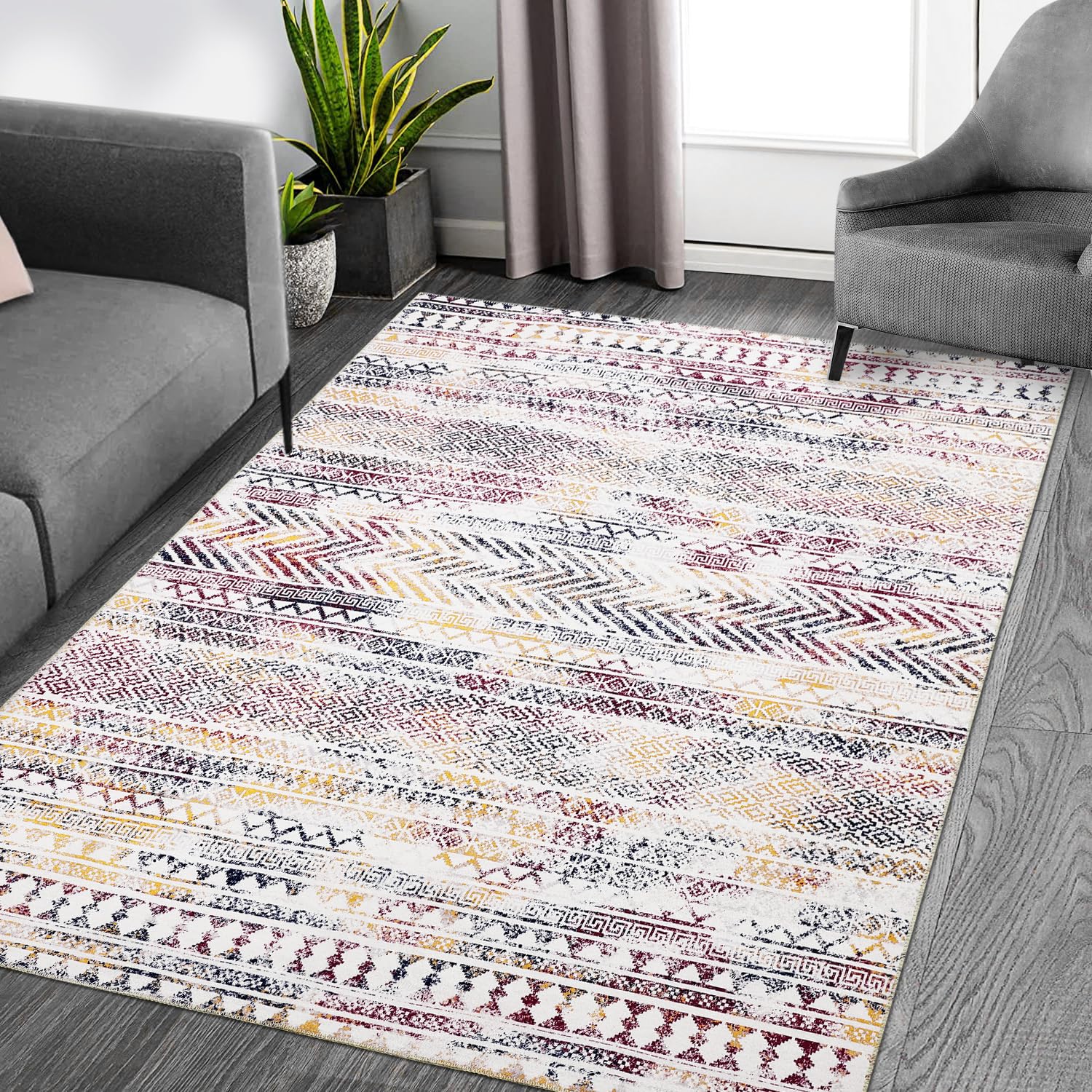 Garvee Boho Area Rug 6x9 Geometric Area Rug Machine Washable Area Rug Bedroom Rug Moroccan Area Rug Colorful Throw Floor Cover Indoor Carpet for Living Room Kitchen Home Office, Multi 6' x 9'