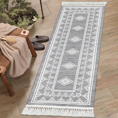 Garvee Boho Washable Runner Rug, Non-Slip Moroccan Tribal Carpet with Tassels, Stain-Resistant Farmhouse Geometric Floor Cover, Grey