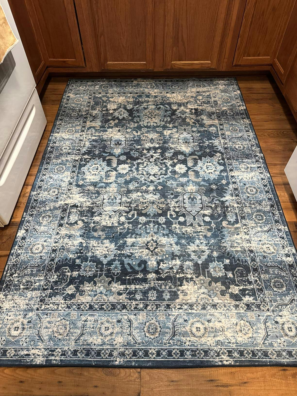 - The rug features a charming vintage distressed pattern that adds a touch of elegance to any home decor. Its timeless design effortlessly complements various interior styles, making it a versatile and stylish addition to your living space.