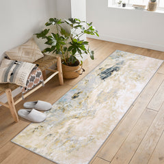 - With an abstract pattern style, This rug with an abstract print with splashes of blue, orange, yellow, and gray hues.