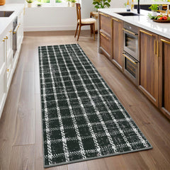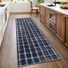 Garvee Runner Rug 2x6 Non-Slip Washable Low-Pile Checkered Braided Geometric Print for Kitchen Bathroom Hallway Indoor Black
