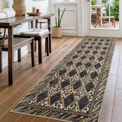 Garvee 2x8 Checkered Leopard Runner Rug, Soft Low Pile Non-Slip Washable Rug for Hallways Kitchen Bedroom, Brown Black, 2'x8'