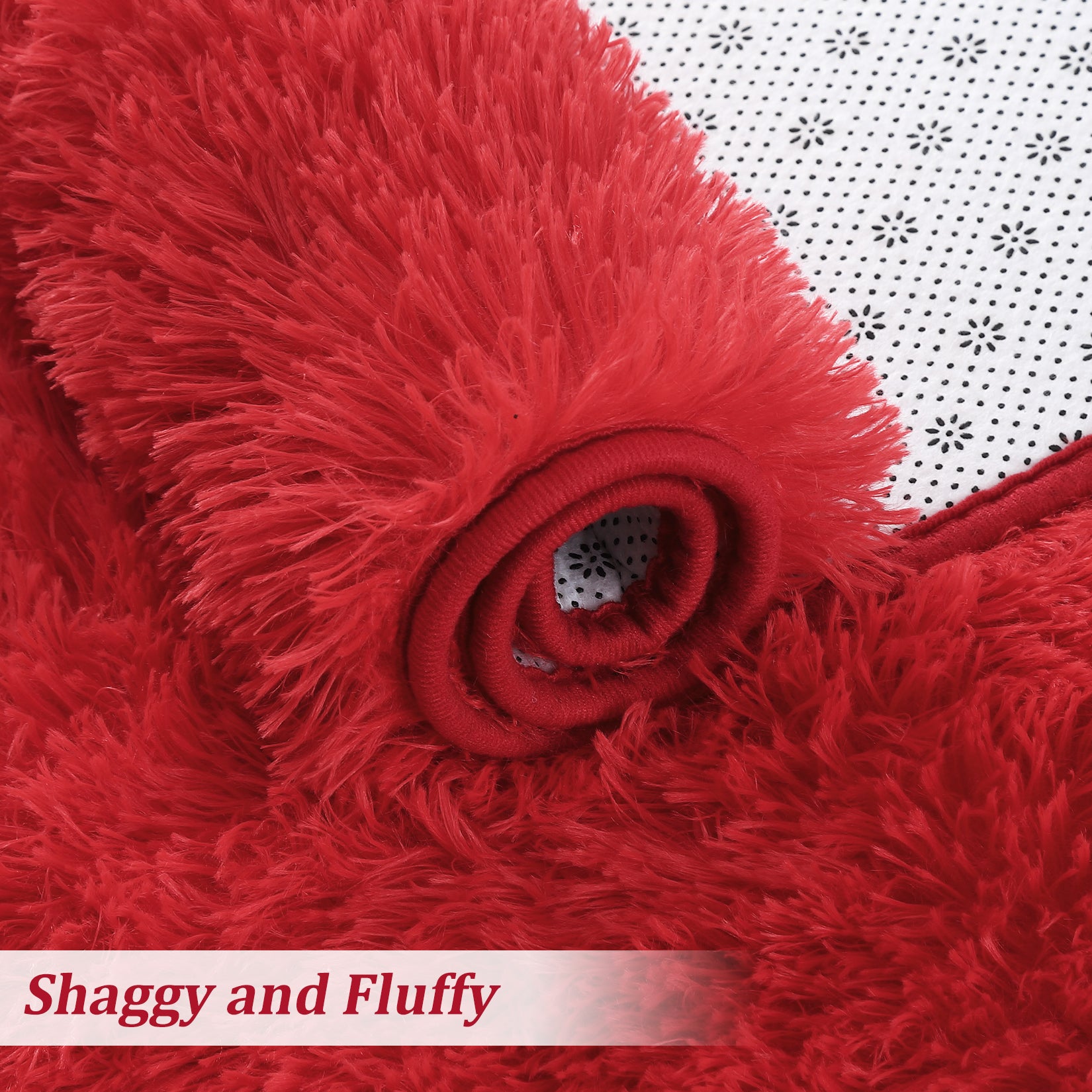 - Superior Quality Material: Our area rug was designed to last for years to come! This soft fluffy rug is made of 3 layers of high quality material. The shag rug surface is covered with 1.6" plush high pile for warmth and beauty. The fuzzy rug also features an ultra-soft foam middle layer and a non-slip base. 400 GSM high-density shag carpet surface(total about 650GSM with bottom).