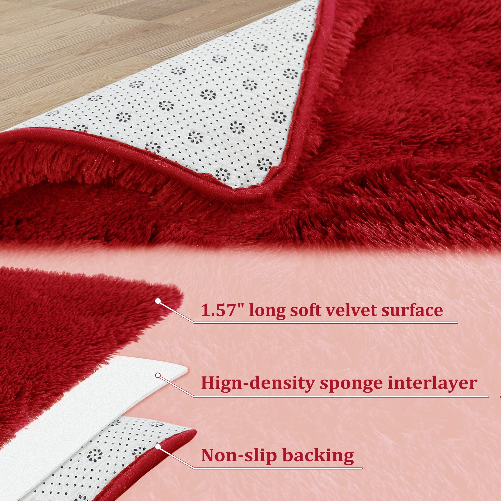Garvee Fluffy & Sheepskin Red 2x6 Runner Rugs Fluffy Rug for Bedroom, Shag Furry Area Rug Carpet Non Shedding Plush Hallway Runner Rug Fuzzy Accent Rug for Kitchen Entryway Decoration