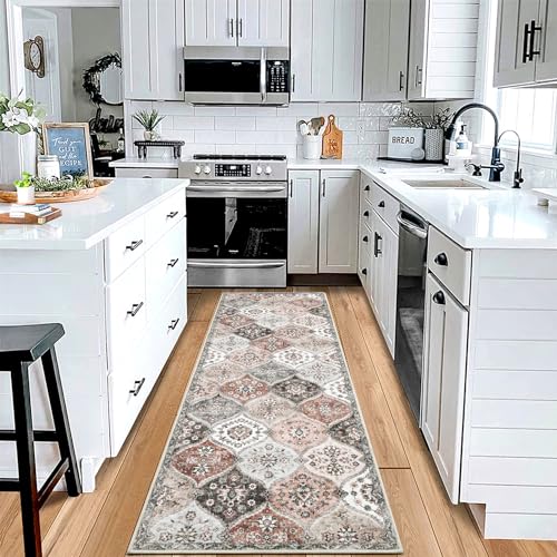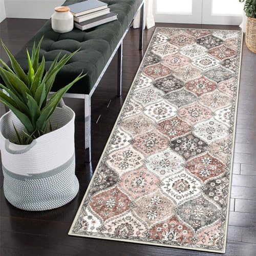 Garvee Runner Rugs for Hallway 2x6 Moroccan Bathroom Rugs Machine Washable Trellis Geometric Pink Rug Non Slip Kitchen Entryway