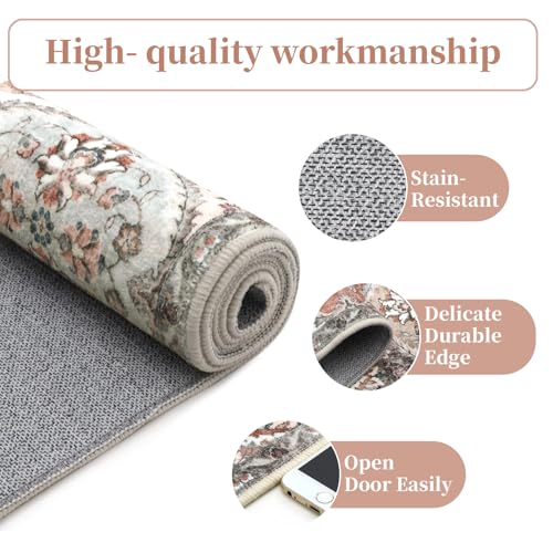 The washable rug is an ideal base for high-traffic areas such as the entrance, living room, dining room, kitchen, and hallways.