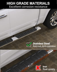 Constructed from premium stainless steel, these running boards support up to 400 lbs, providing durability and stability for all passengers.