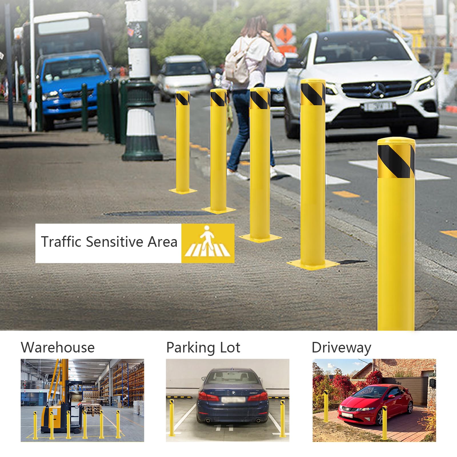 Garvee Safety Bollard Post 48 Inch Steel, High Visibility & Durability, Q235 Steel, Weather-Resistant Coating, Parking Lot, Warehouse, Driveway