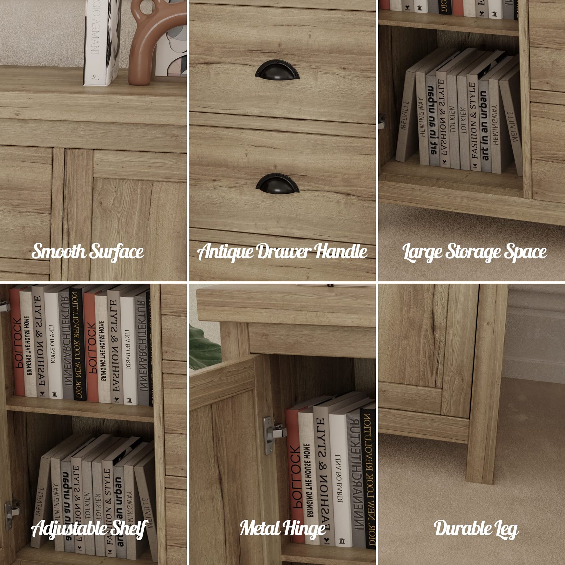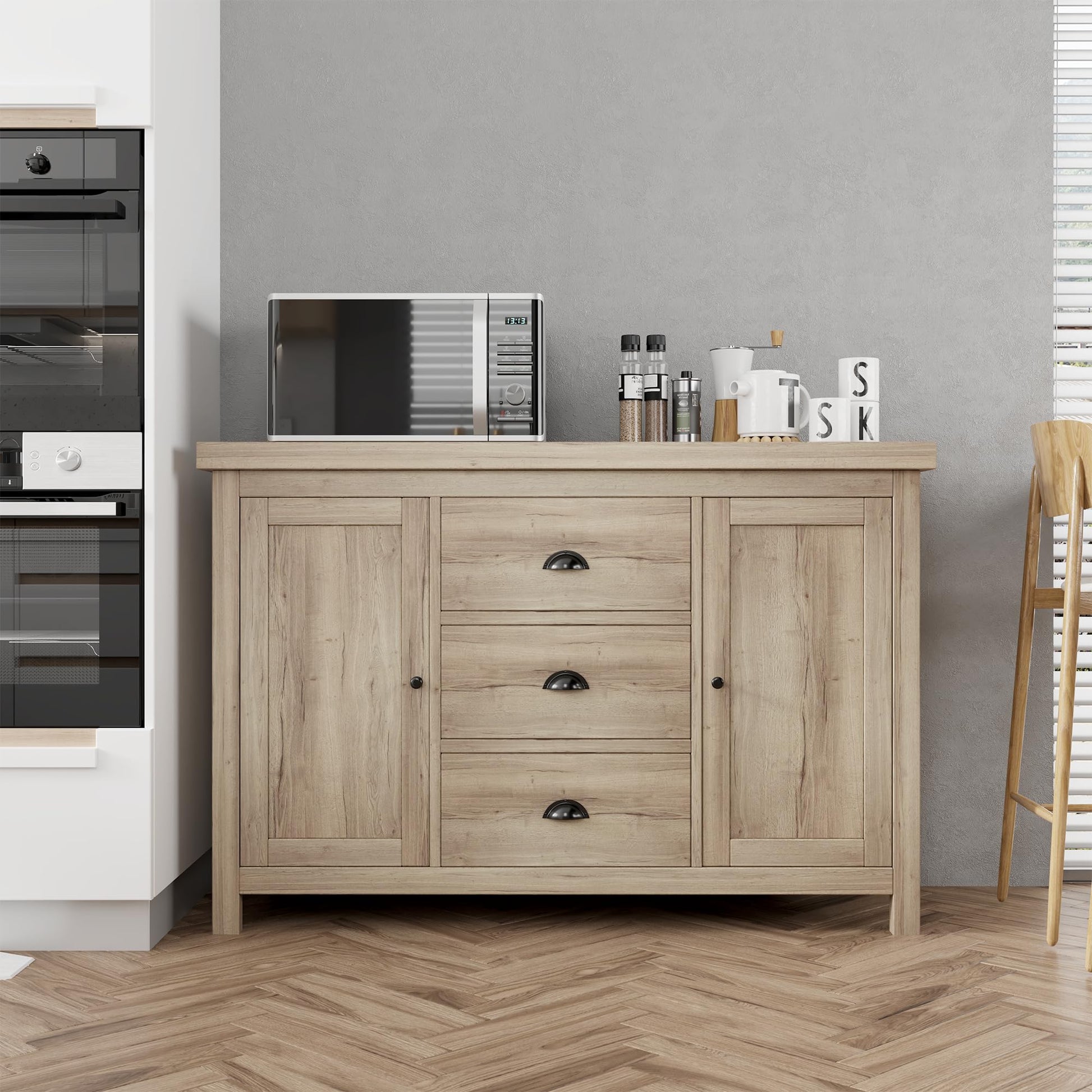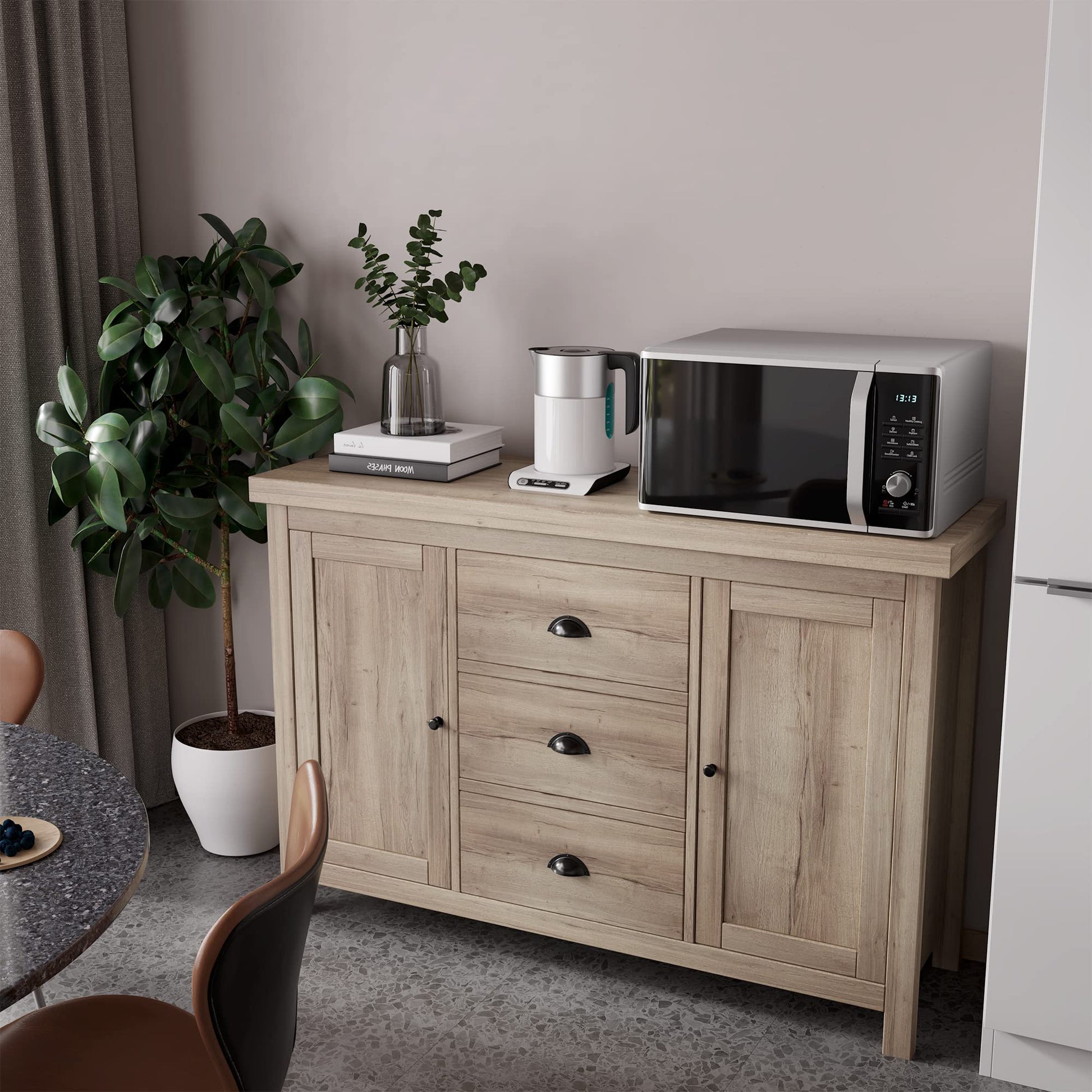 Garvee Oak Buffet Sideboard with 3 Drawers, 2 Doors for Kitchen Storage