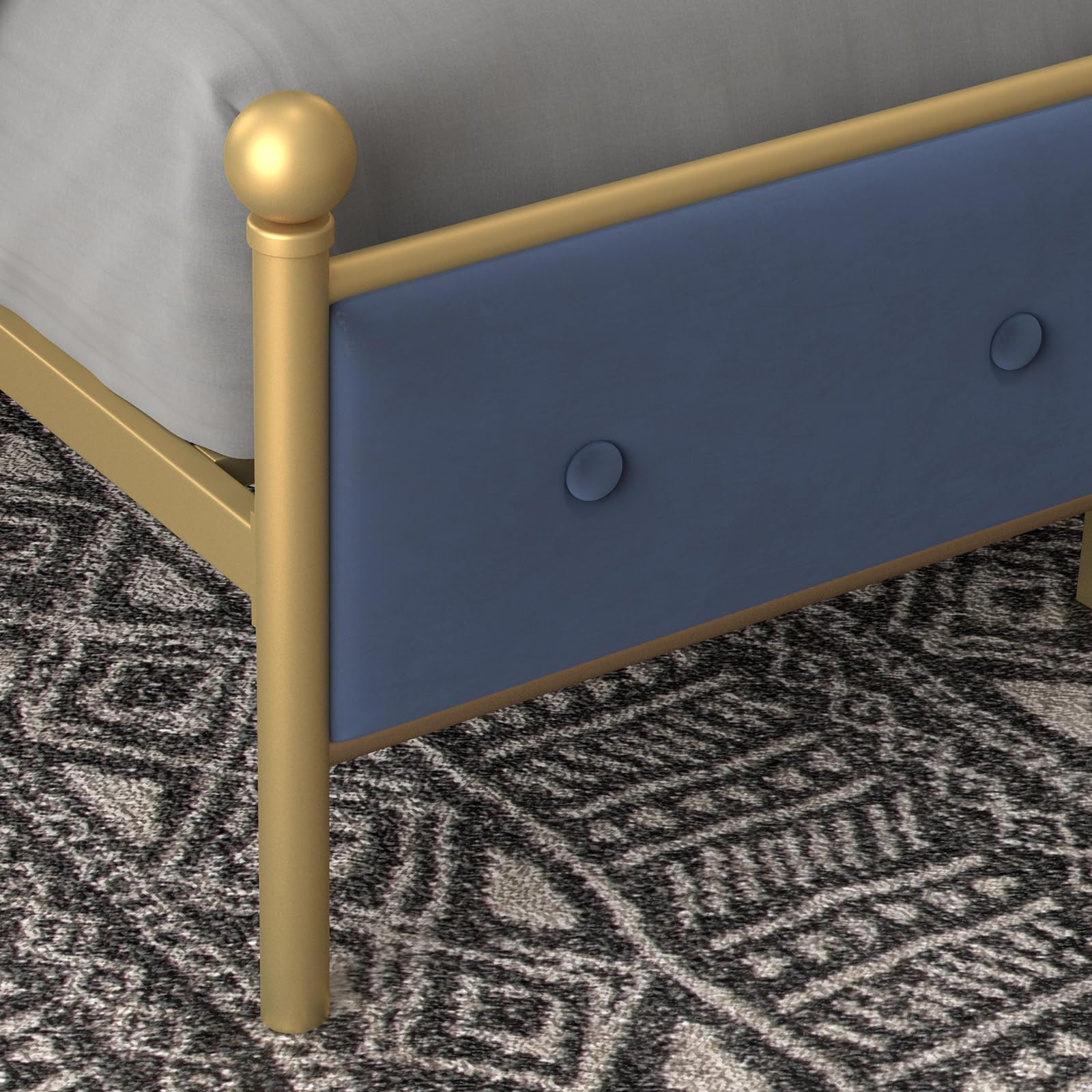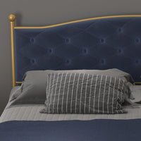 Luxurious velvet headboard paired with a stunning gold frame creates a sophisticated and elegant look for your bedroom.