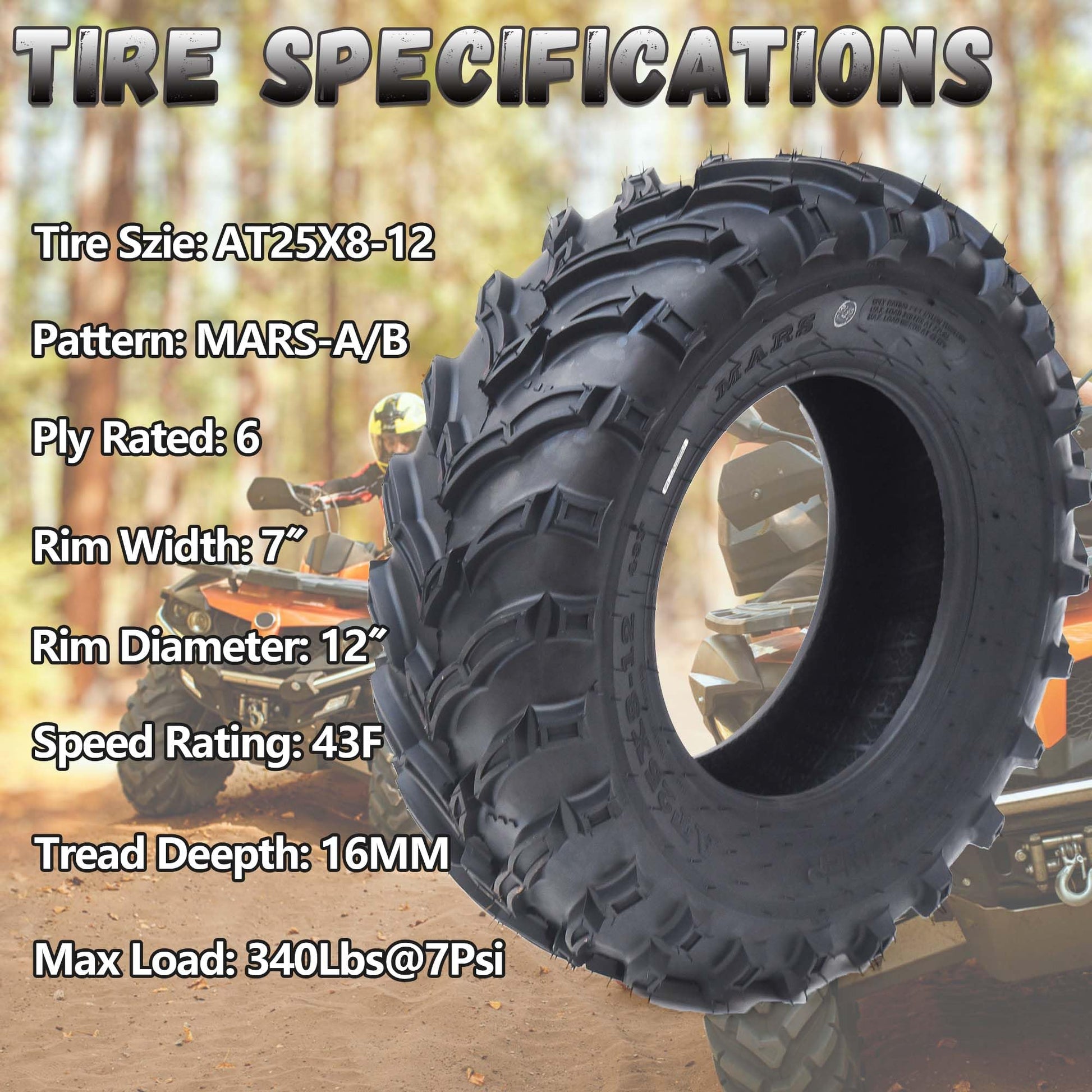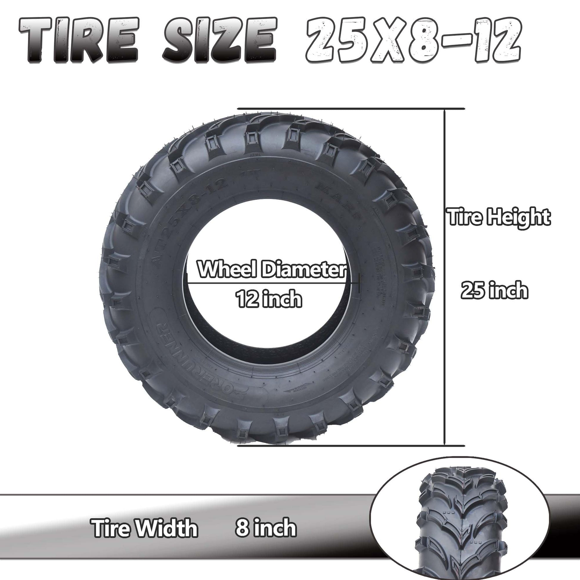 - 25x10x12 ATV Tires, 6PR Tubeless