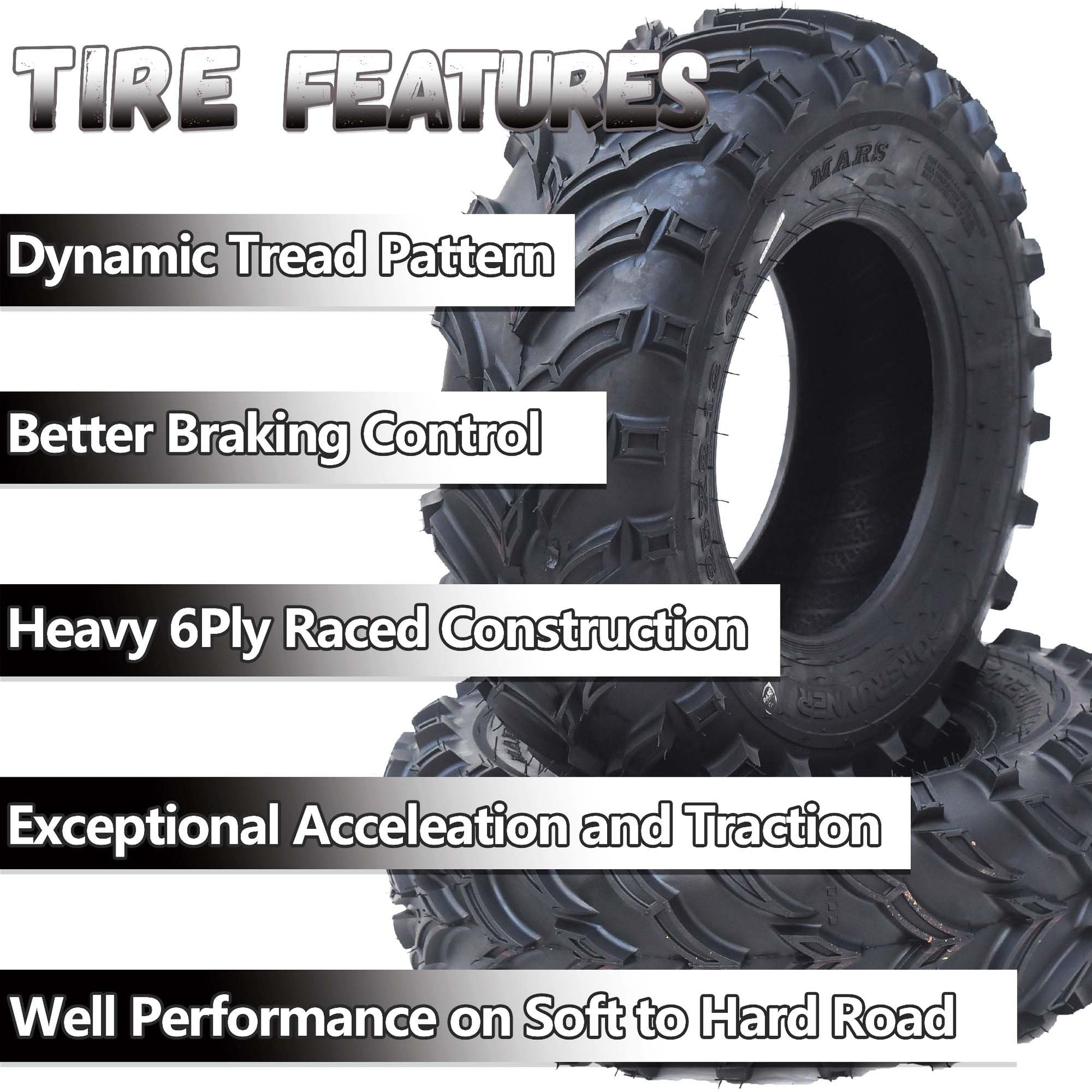 Garvee Set of 2 ATV Trail Tires 6PR Knobby Sport Tires, Tubeless - AT25x10-12-6PR TL MARS