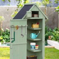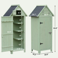 Garvee Fir Wood Lockable Storage Cabinet with Waterproof Asphalt Roof & Adjustable Shelves for Patio Backyard Garage Green 22.6"x 18.2"x 63.6"