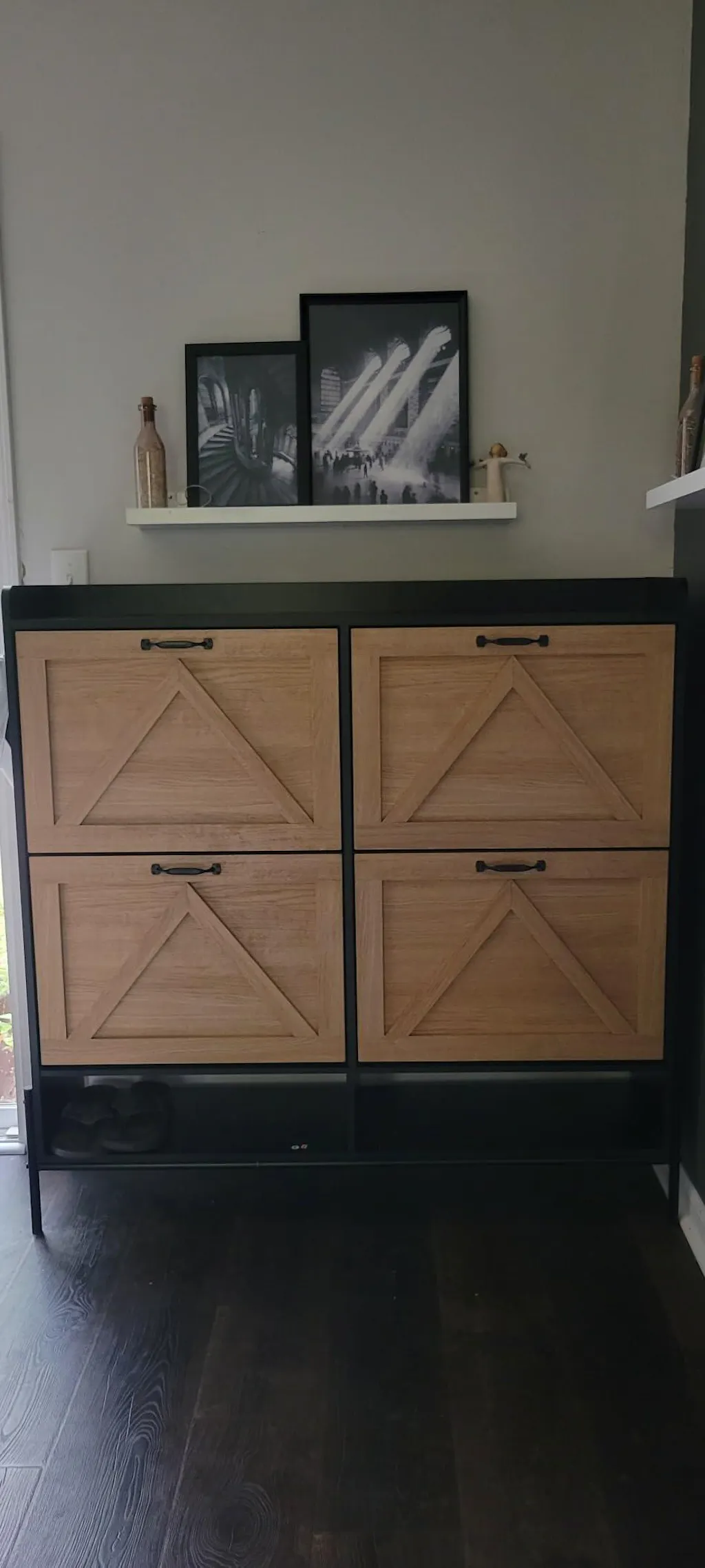- Reliable Quality: Constructed with high-quality MDF and metal accessories, the shoe cabinet ensures a stable structure and excellent load-bearing capacity. The black handle is both simple and elegant, providing a comfortable grip and making it easier to open the drawers.