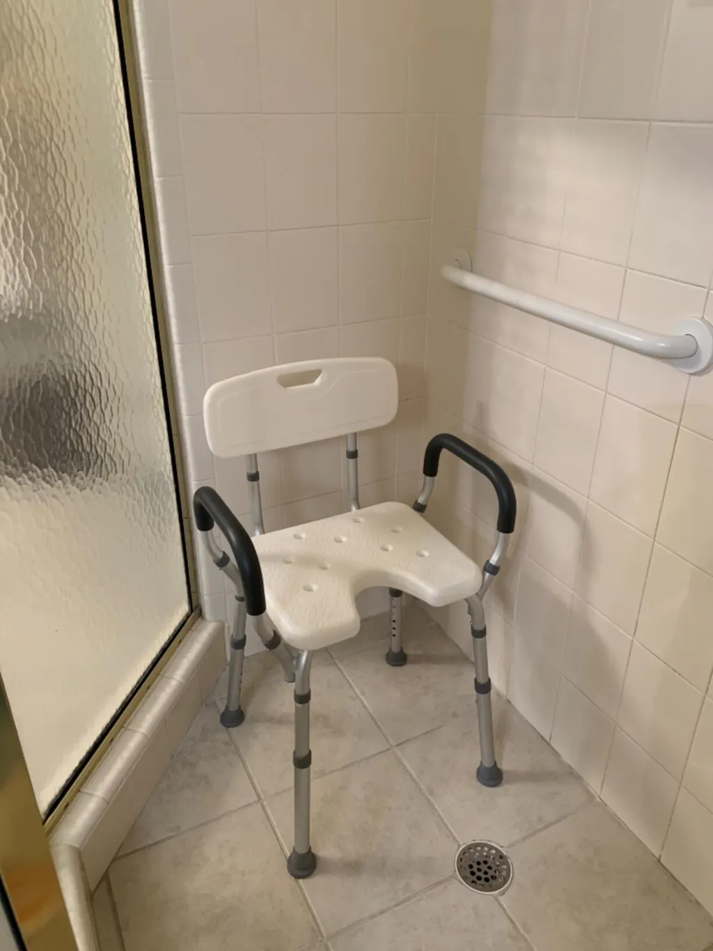 Shower Chair with Back to provide you a safe and comfortable care during bath time.