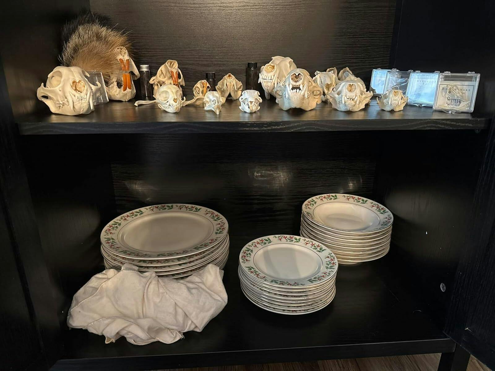 - Glass doors elegantly showcase dinnerware and decor.