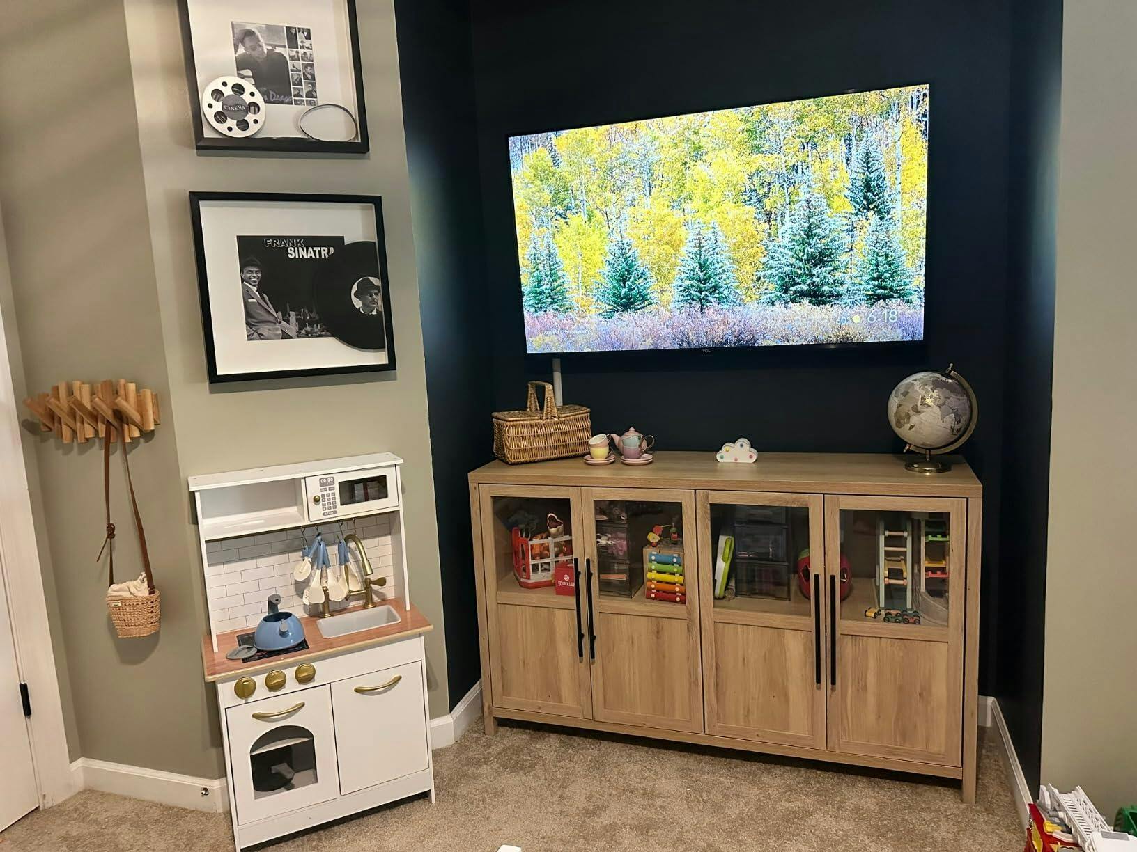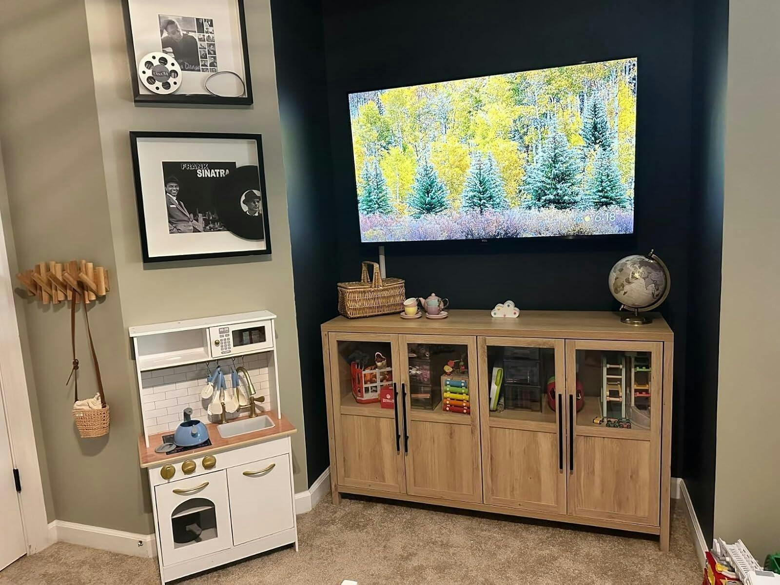 - Versatile storage for kitchen and living room essentials.