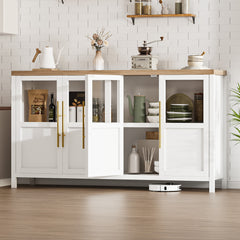 Garvee Sideboard Buffet Cabinet with 4 Glass Doors, 55" Large Buffet Cabinet with Storage, Modern Farmhouse Storage Cabinet Table for Kitchen Dining Room, Living Room, Wood