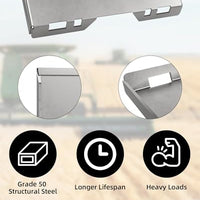 - [Broad Compatibility]The GARVEE skid steer attachment plate boasts universal compatibility with a wide array of loaders and vehicles.With an outer width of 45.2" and inner width of 44.29",it effortlessly fits various equipment.Its 16.81" height and 3/8" thickness ensure dependable performance and durability.