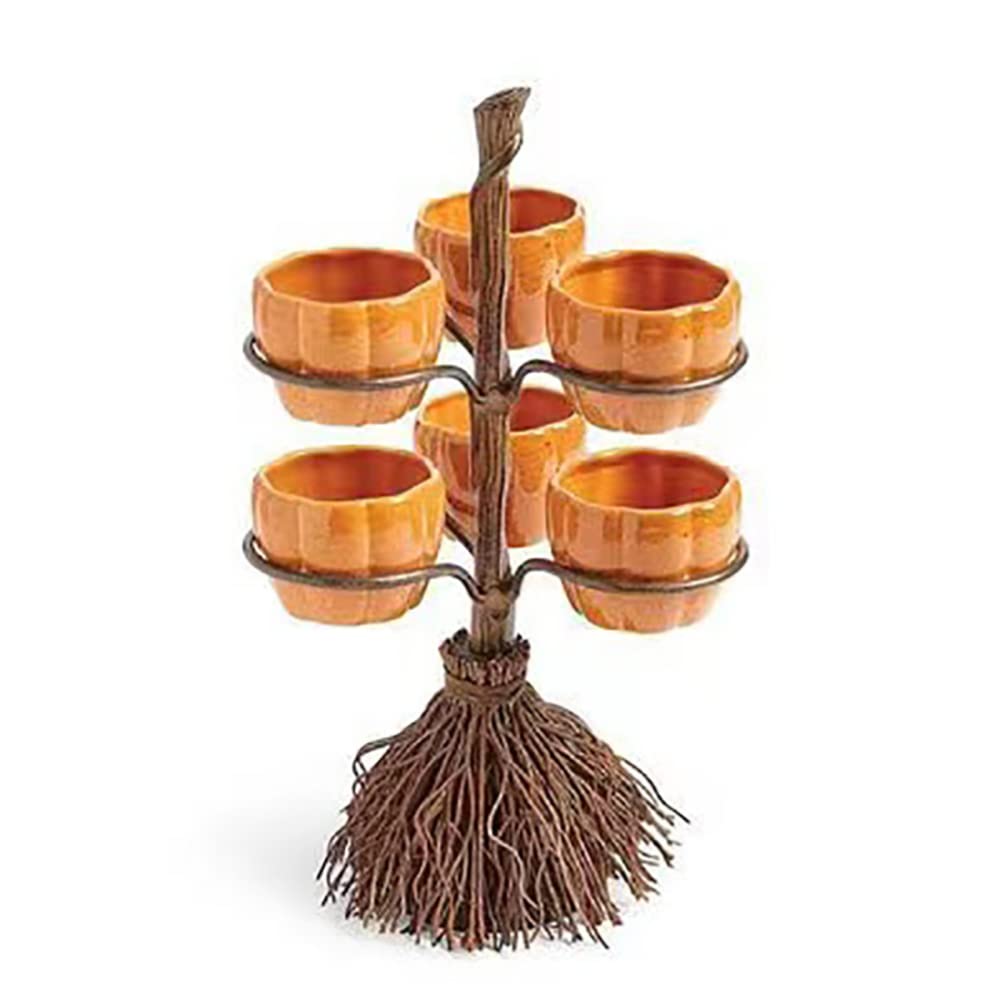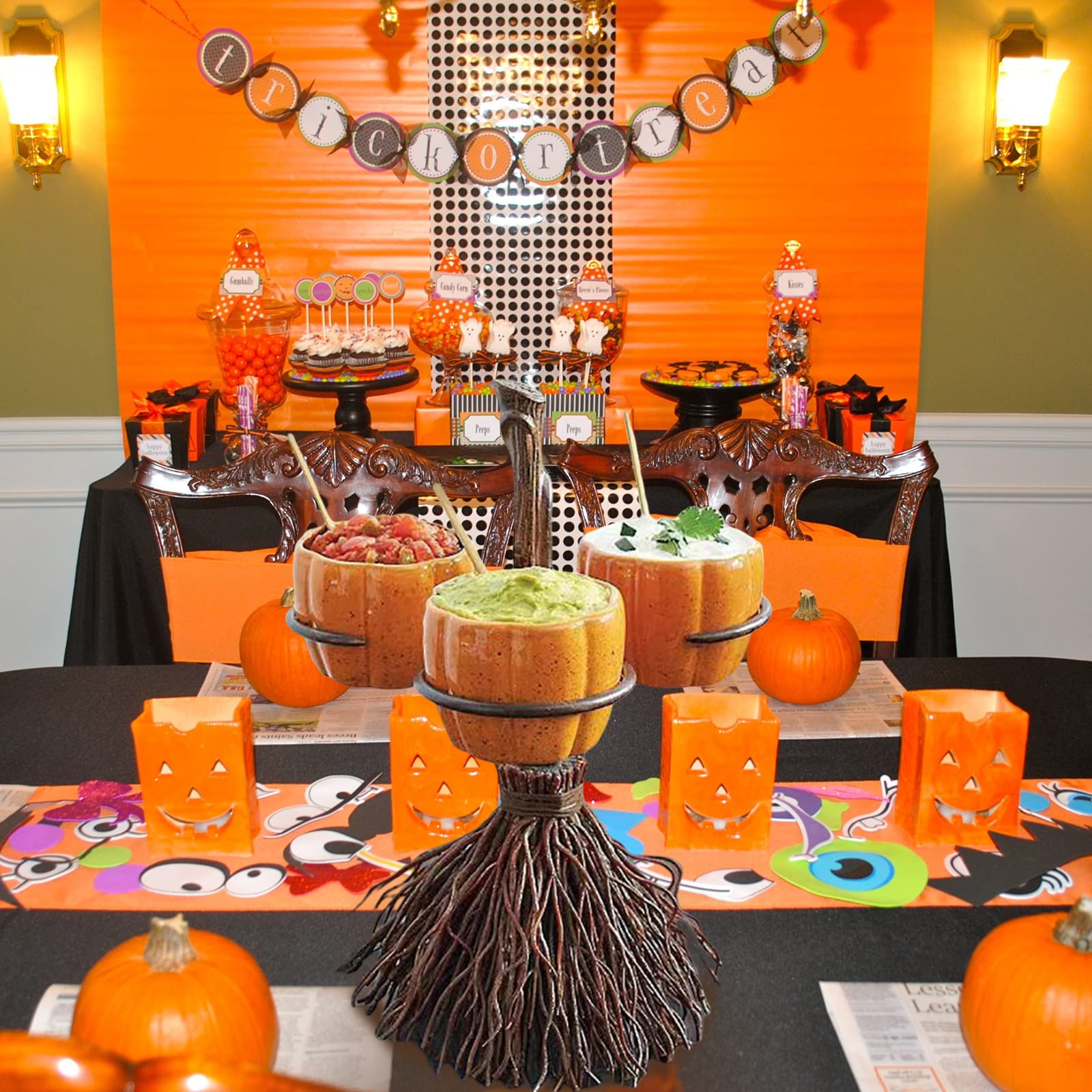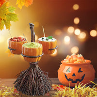 Garvee Halloween Pumpkin Snack Bowl Stand,Collapsible Party Trays,Halloween Candy Bowl,Broomstick Snack Bowl Stand,Perfect for Serving Snacks, Salad, Dessert, Halloween Party Supplies(5bowls)