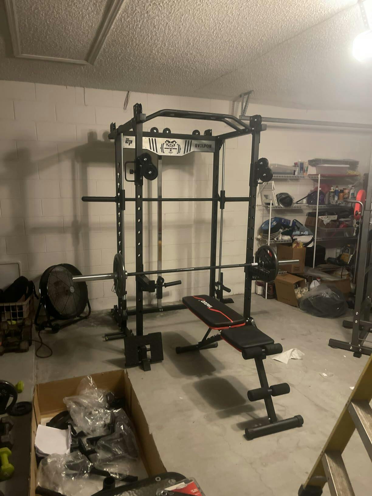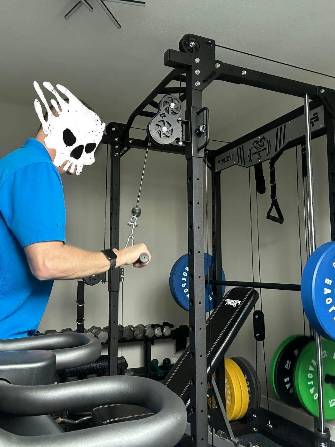 GARVEE Smith Machine Home Gym with Barbell Bar, Cable System, Lat Pulldown Attachments, Safety Spotter Arms, J Hooks, Landmine, Multi-Functional Squat Rack for Full Body Strength Training