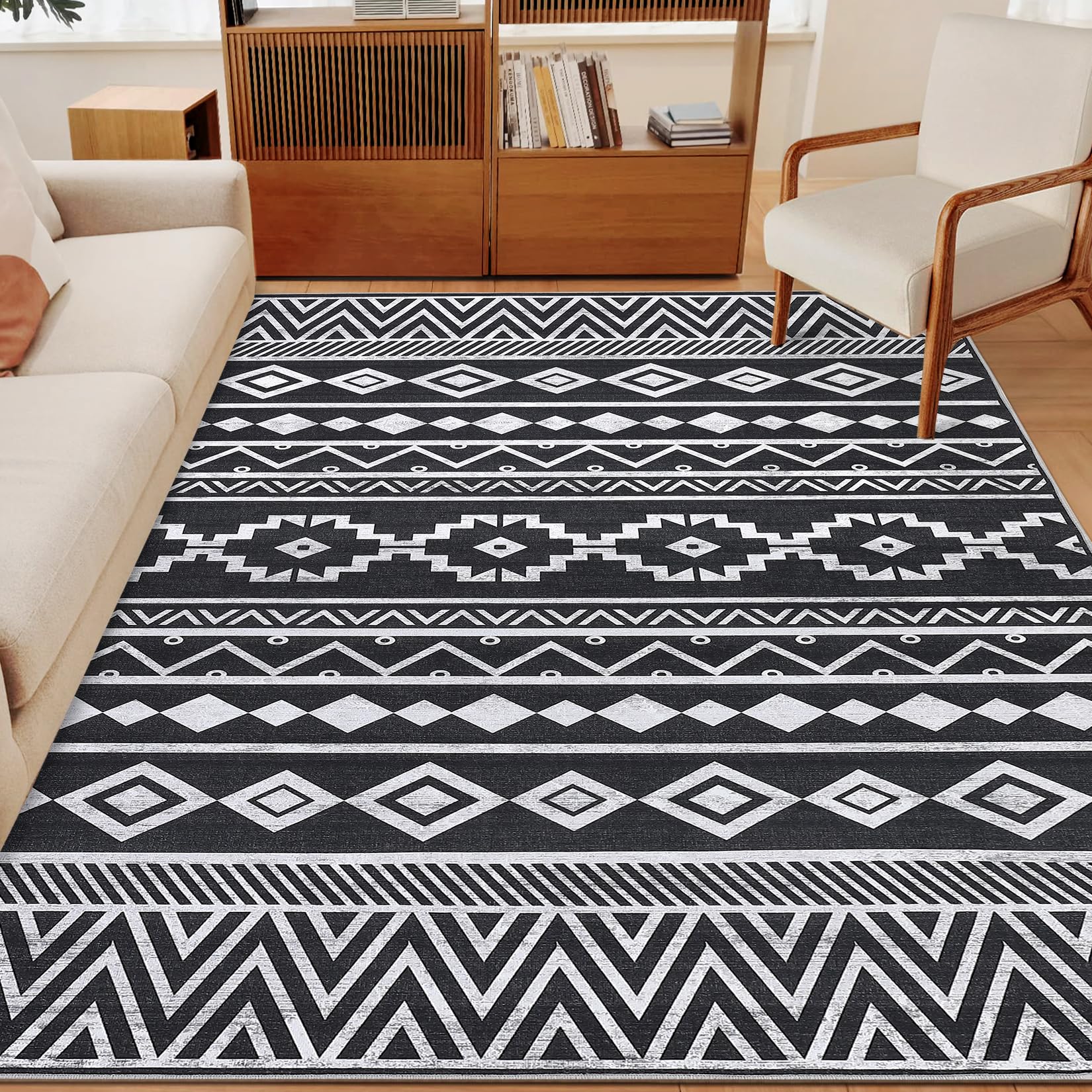 Garvee Soft 9' x 12' Area Rug, Anti Slip, Washable, Pet Friendly, Boho Modern Carpet for Living Room Bedroom, Black