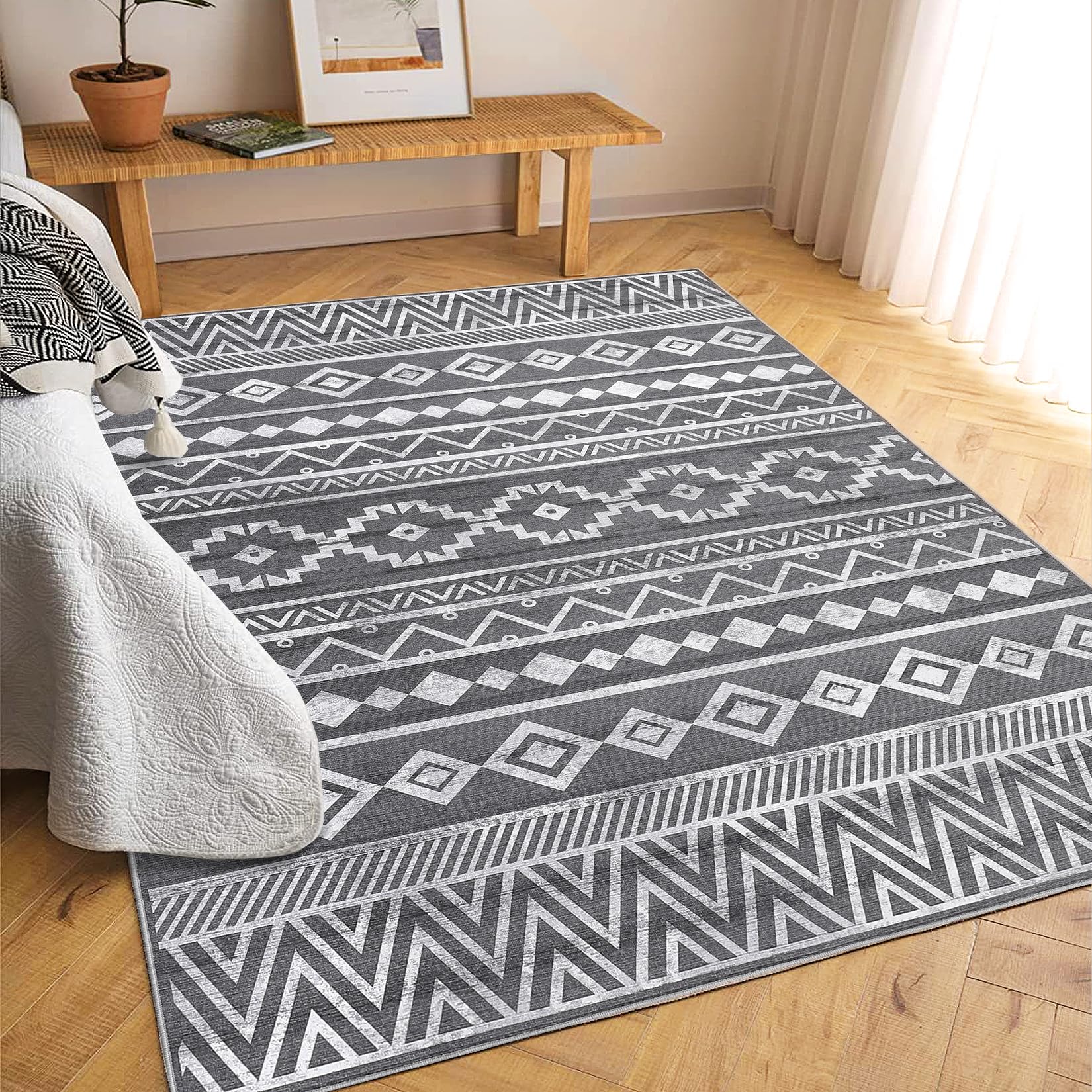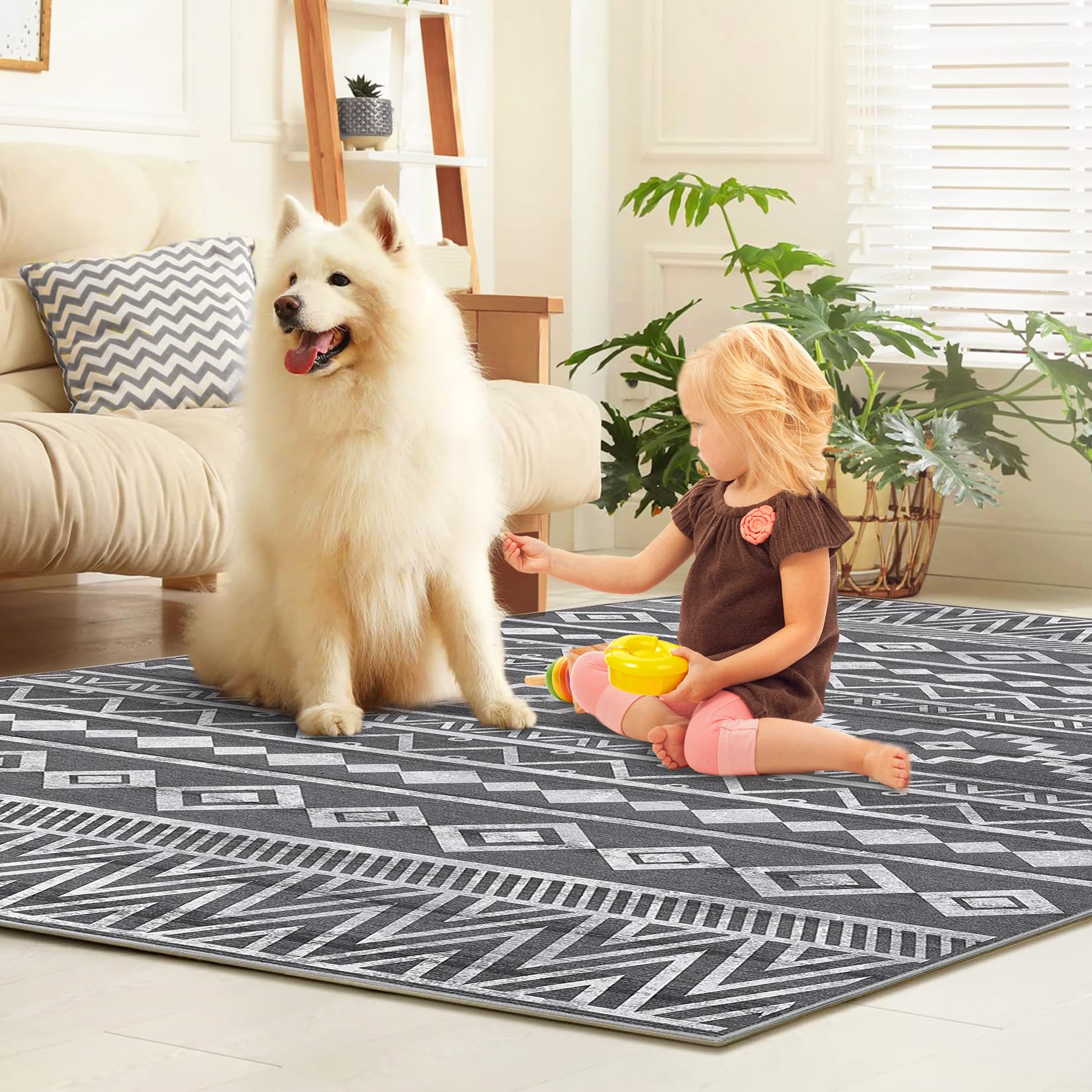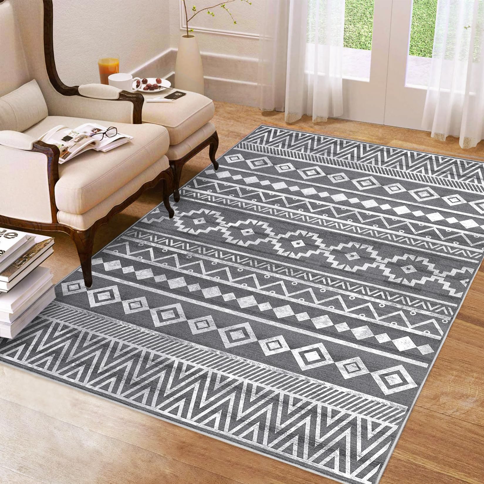 Garvee Soft 9' x 12' Area Rug, Anti Slip, Washable, Pet Friendly, Boho Modern Carpet for Living Room Bedroom, Grey